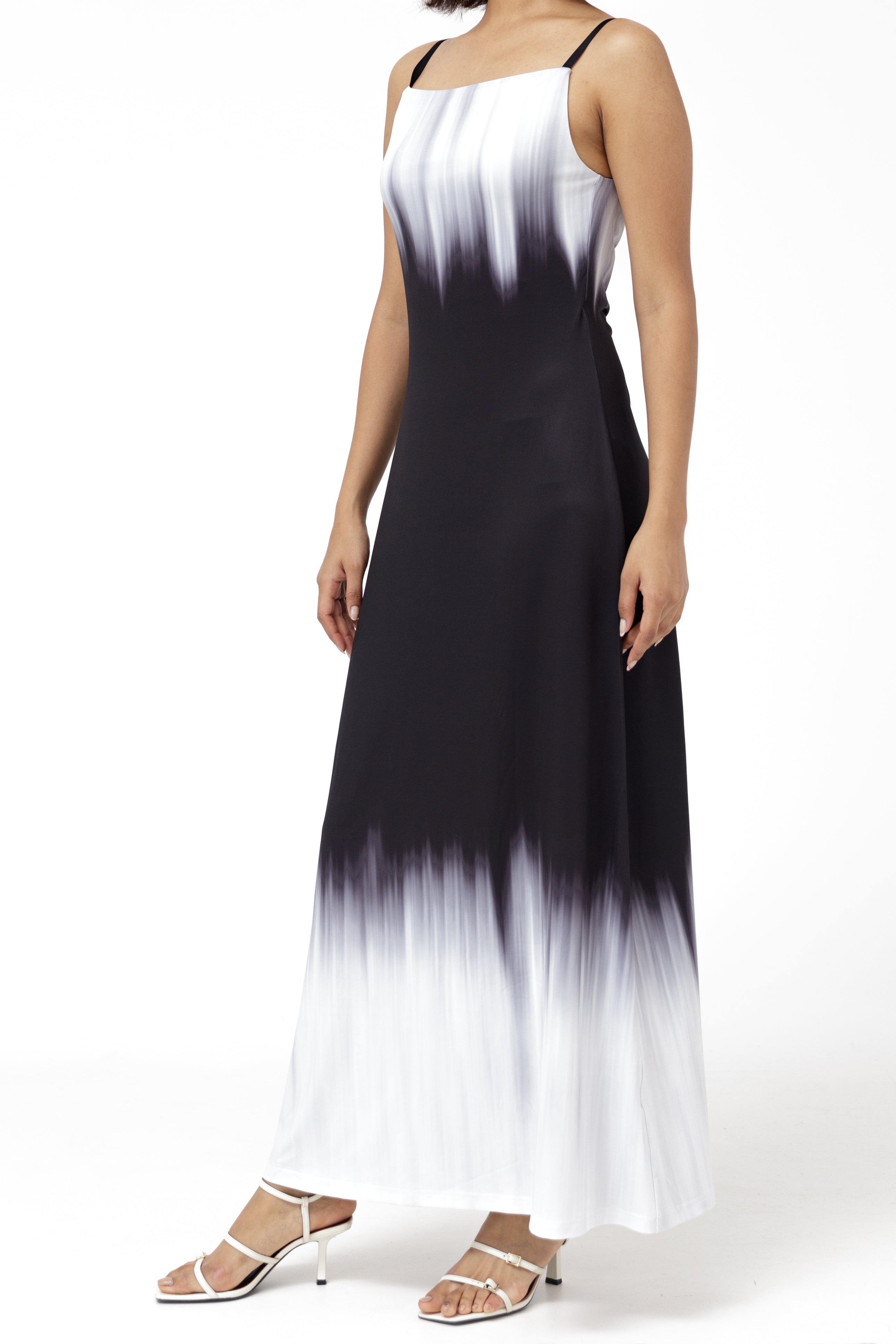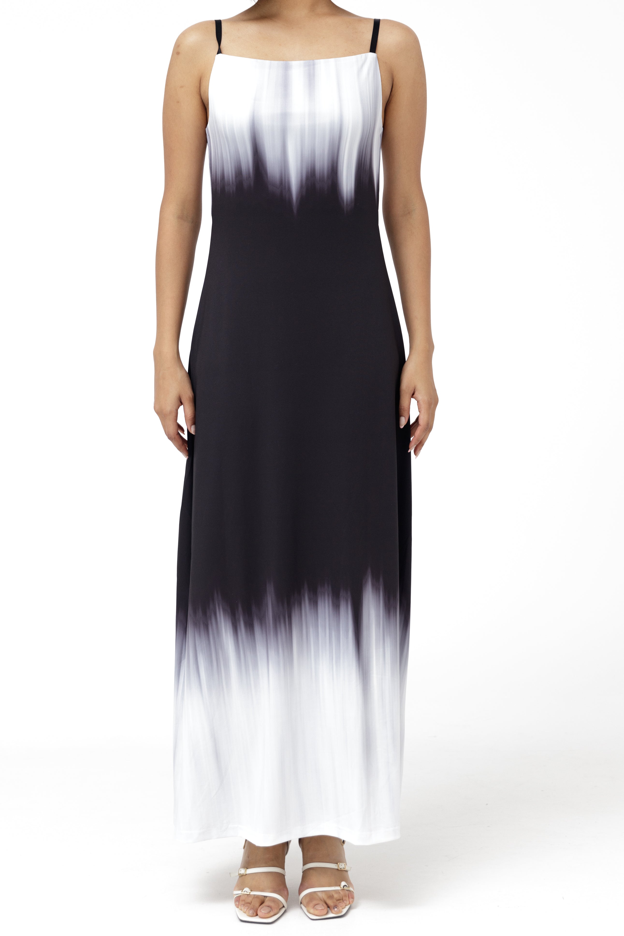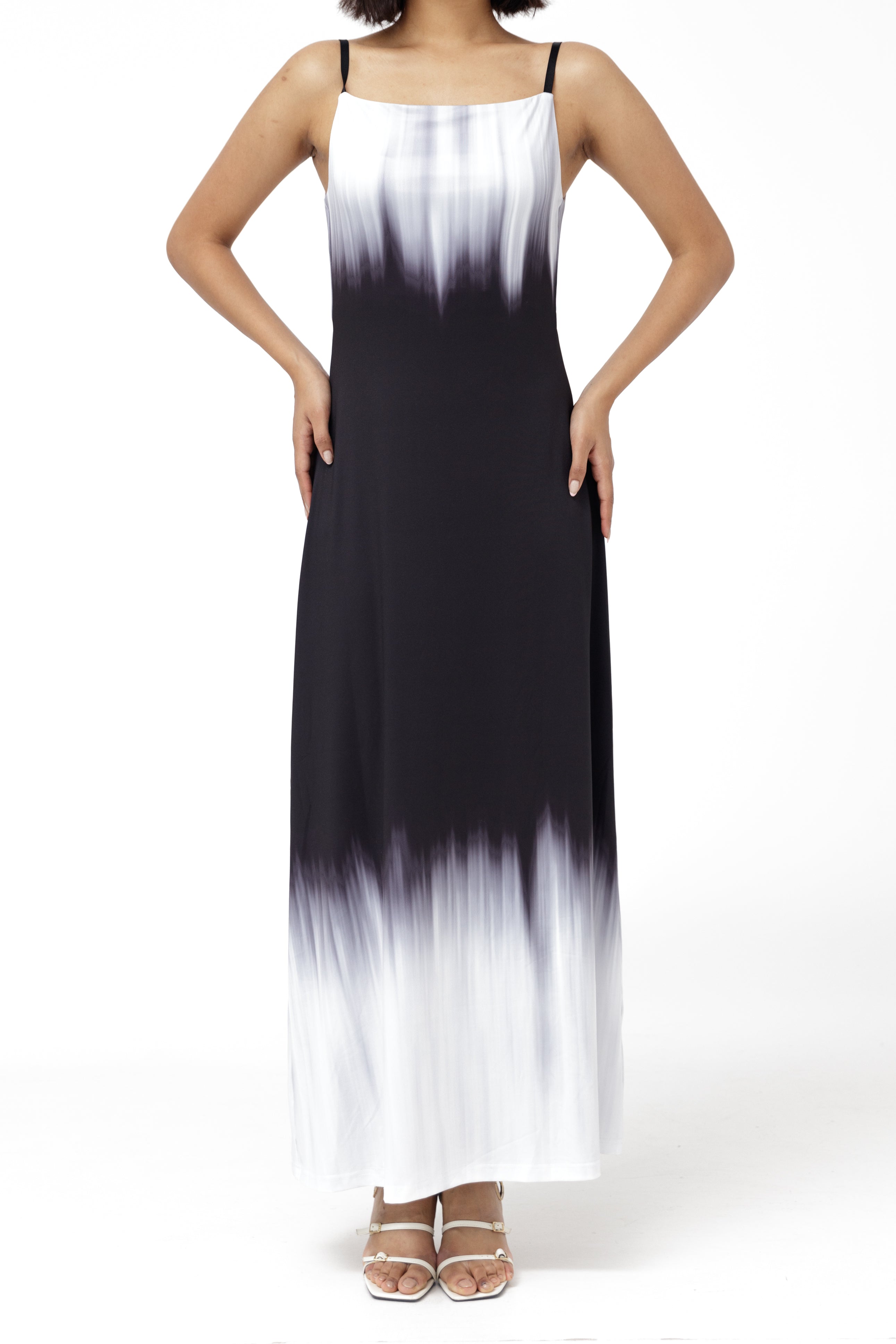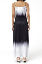 Tie dye style maxi skirt with a square neckline and spaghetti straps
