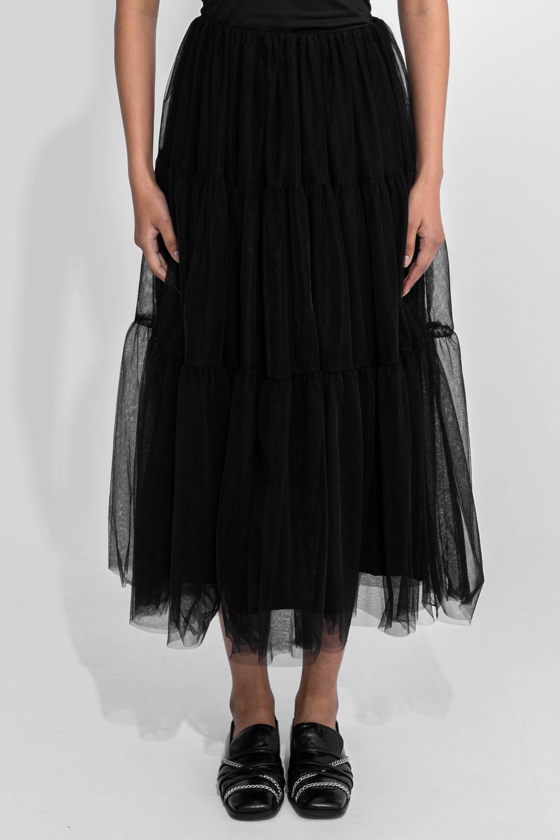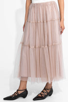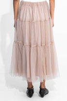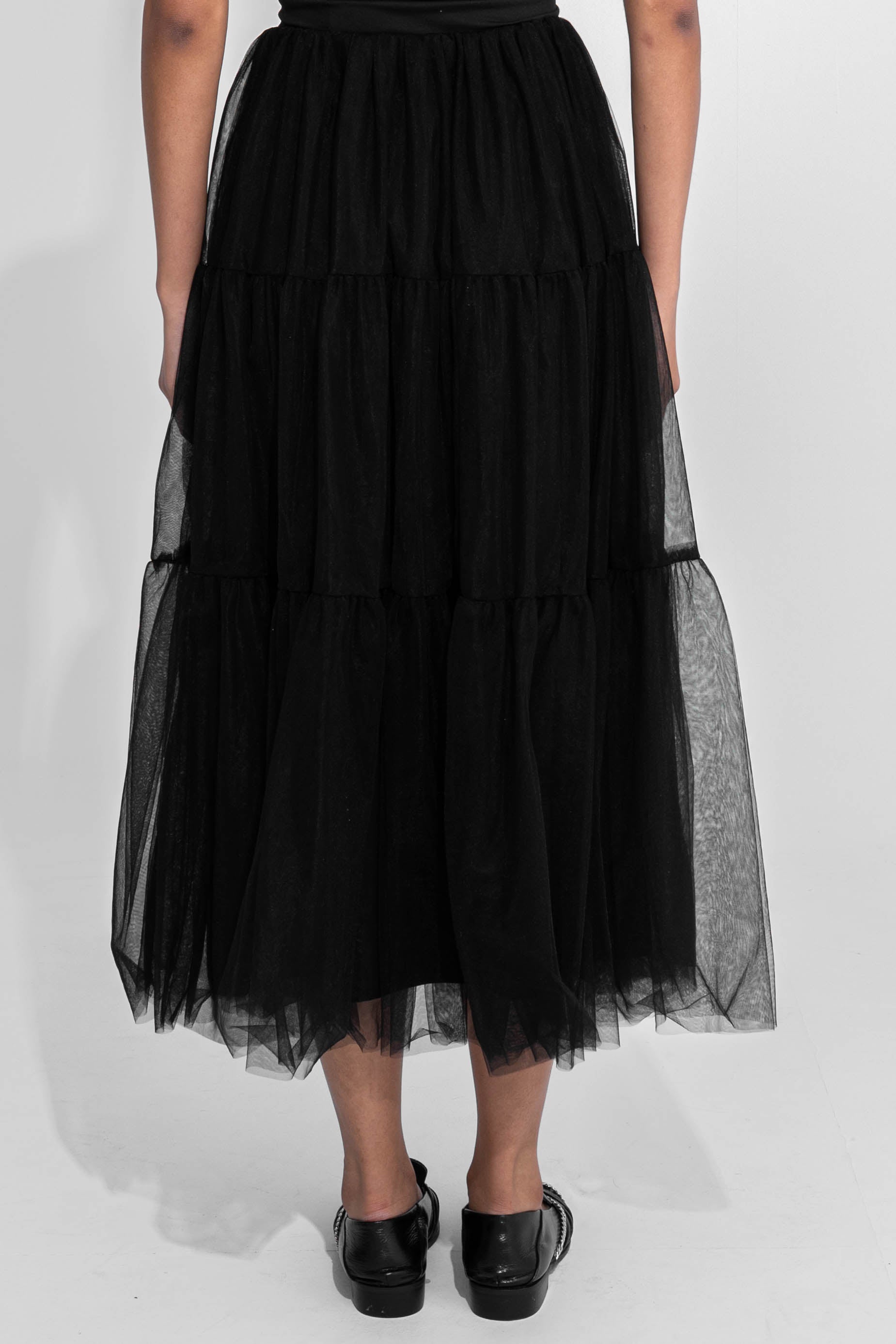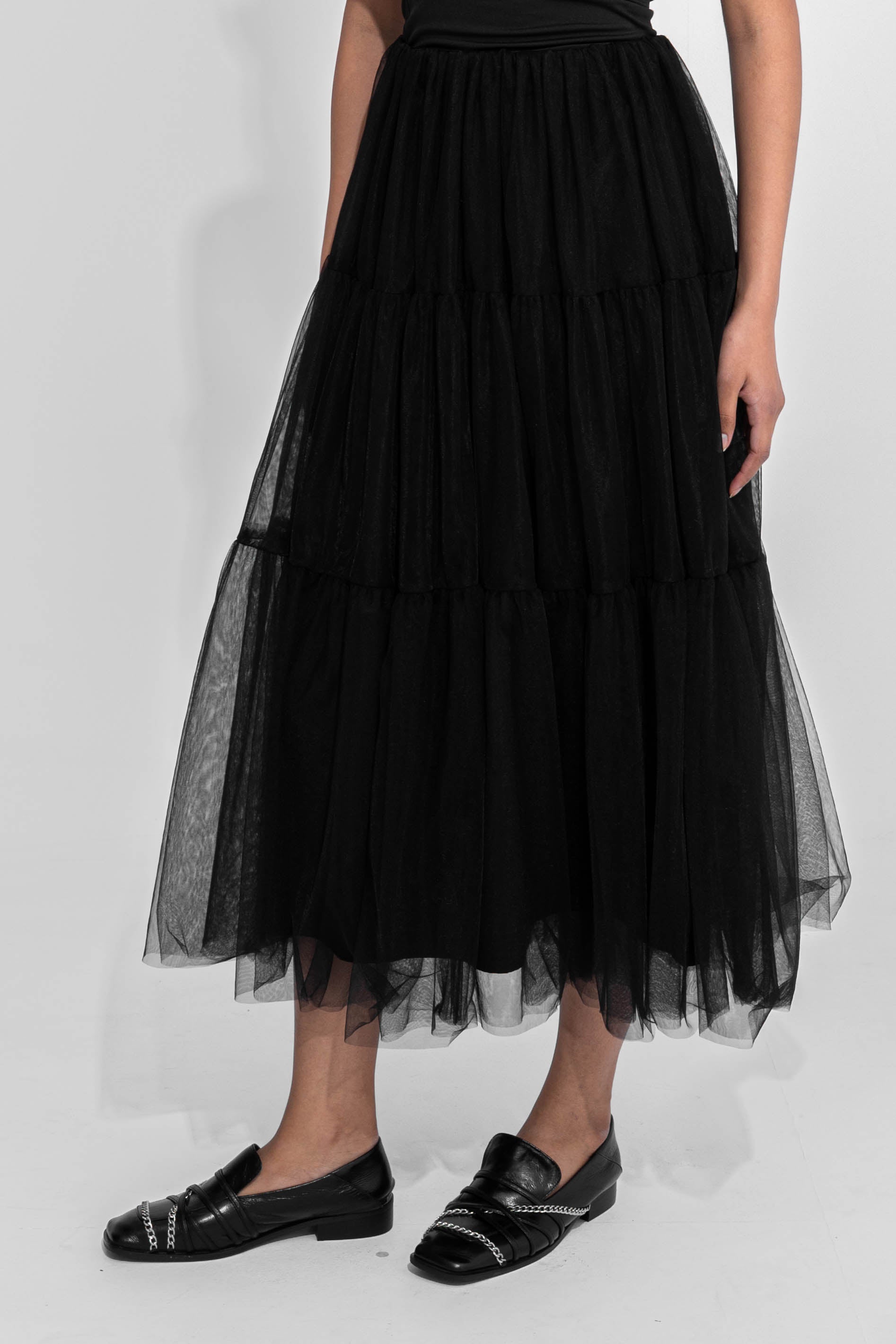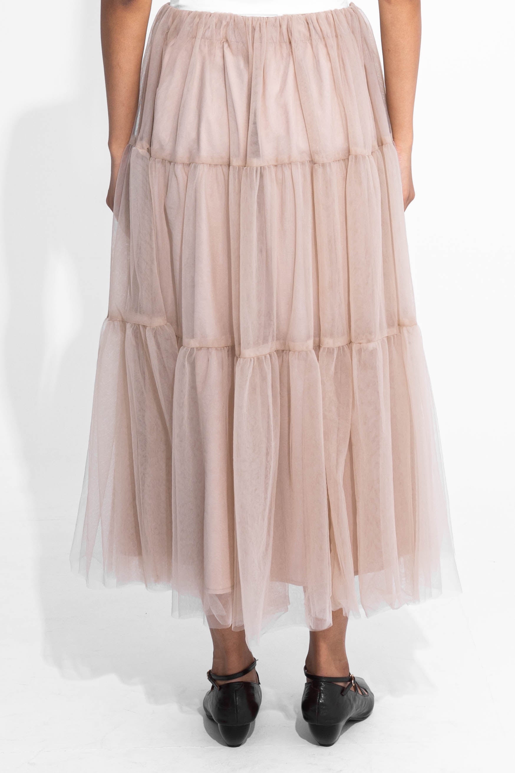 Elastic waitsband. Netted flowly material with lining. Midi length