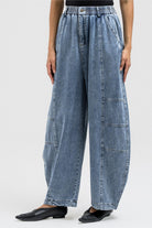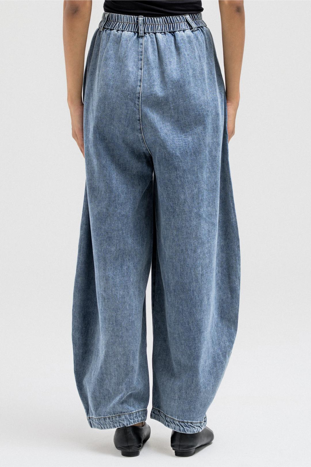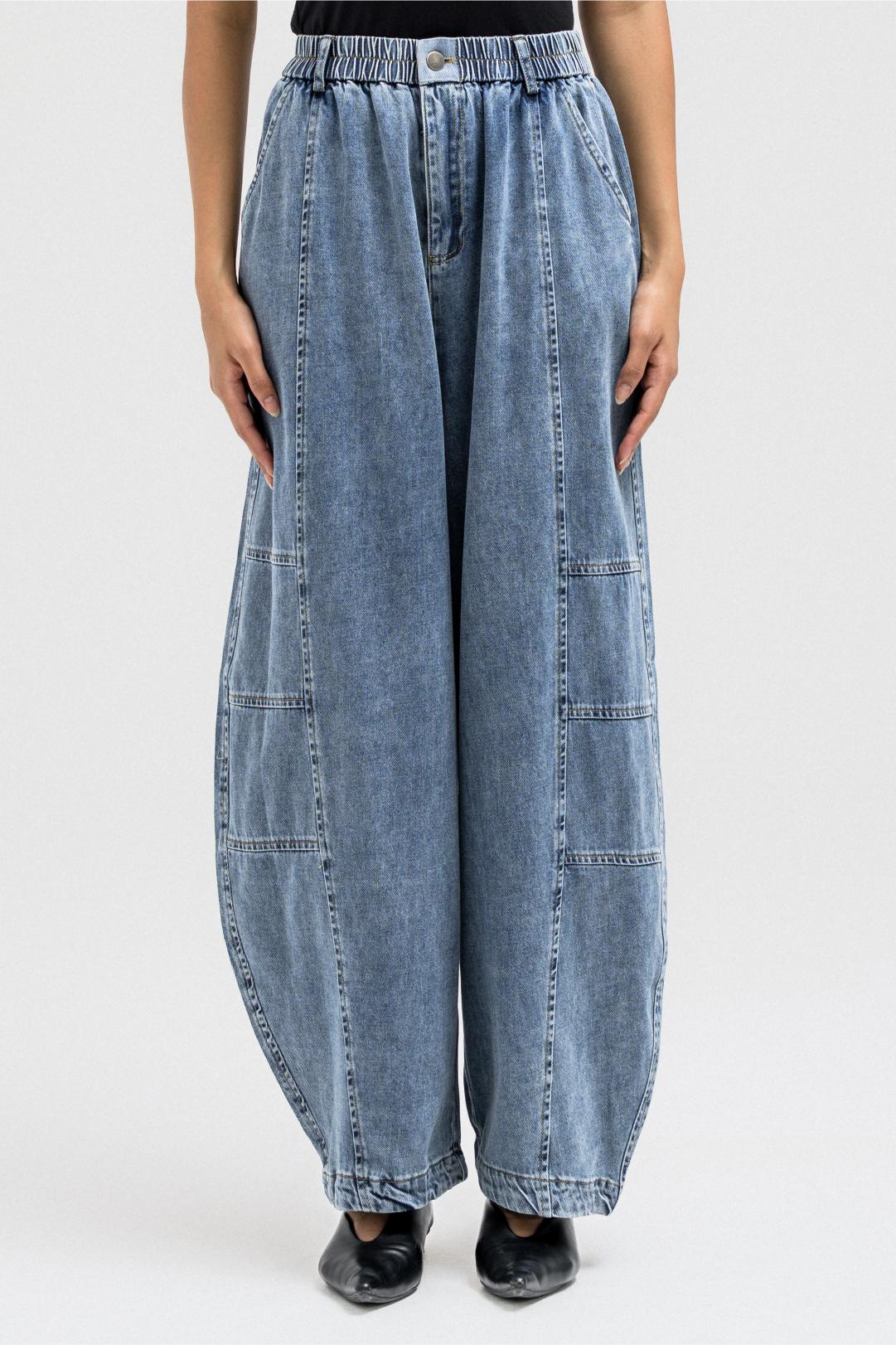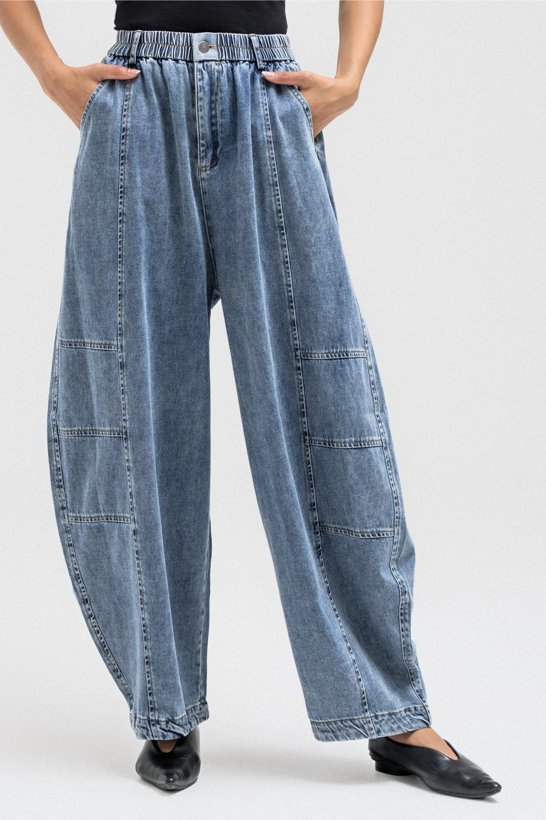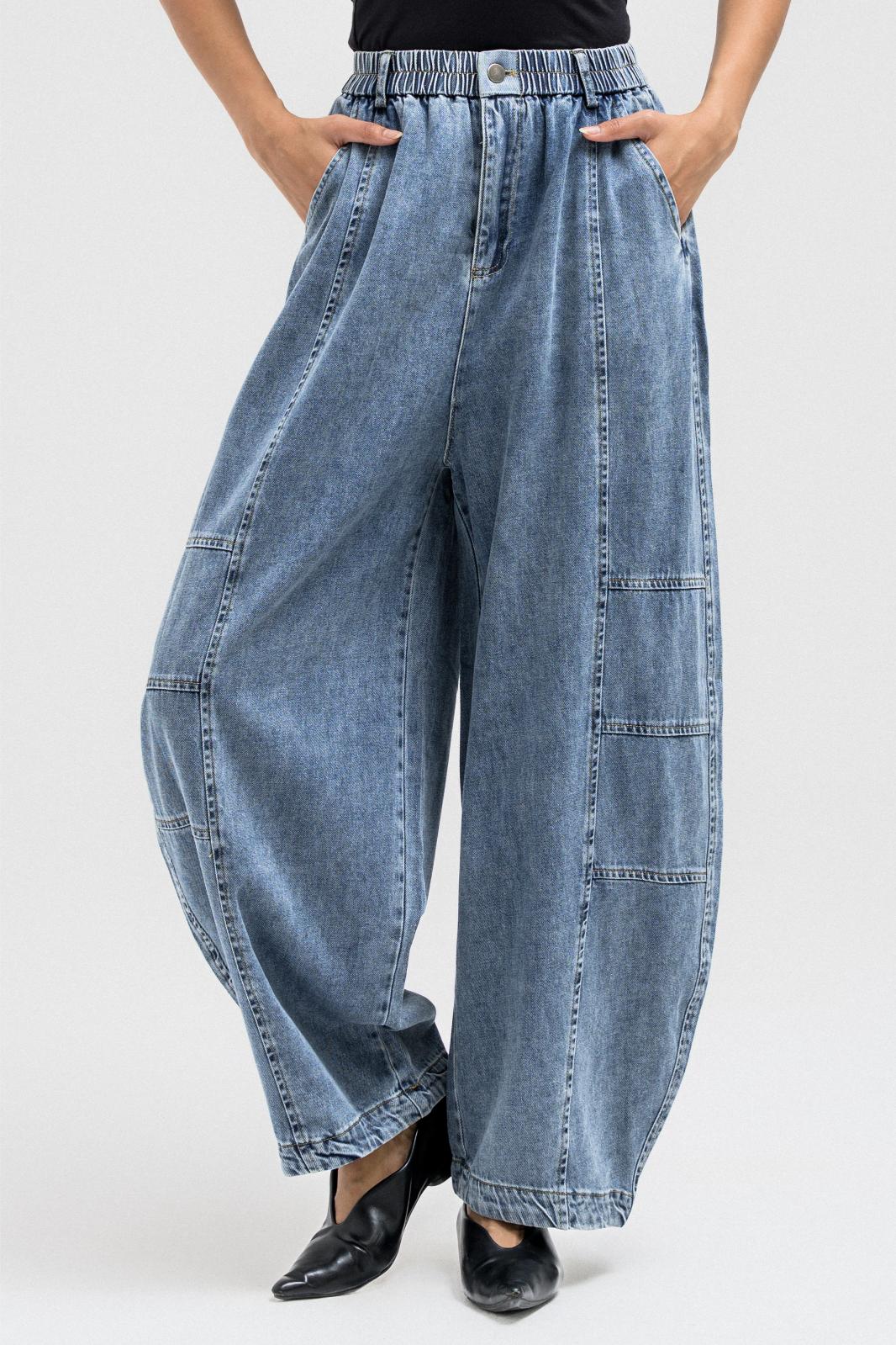 These jeans feature a relaxed balloon silhouette for a modern, effortless fit. Designed with an elastic waistband, front button closure, and side pockets, they combine structure with comfort . Perfect for a laid-back yet stylish denim look.