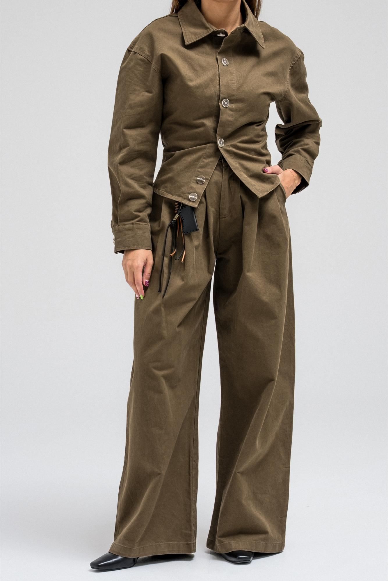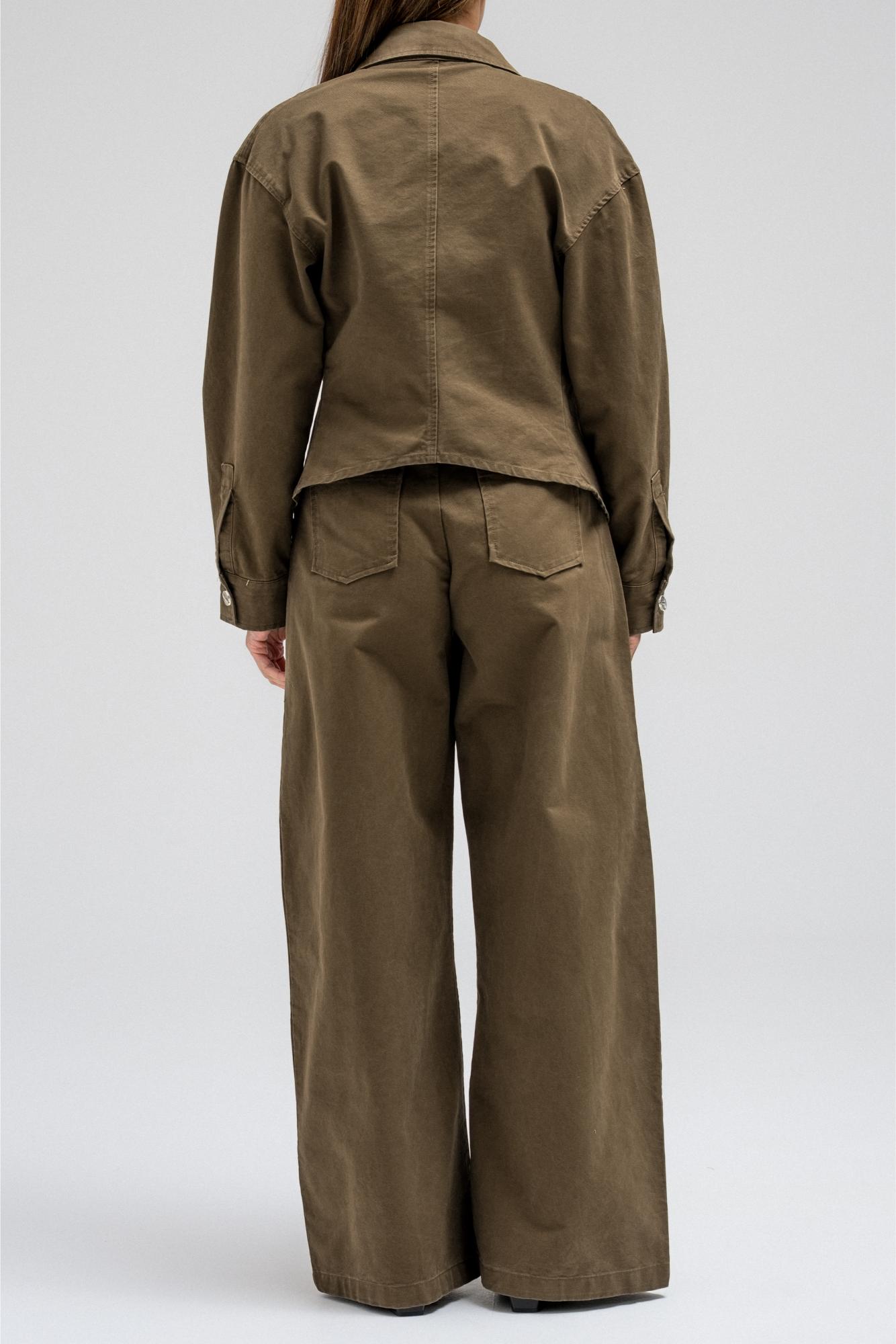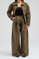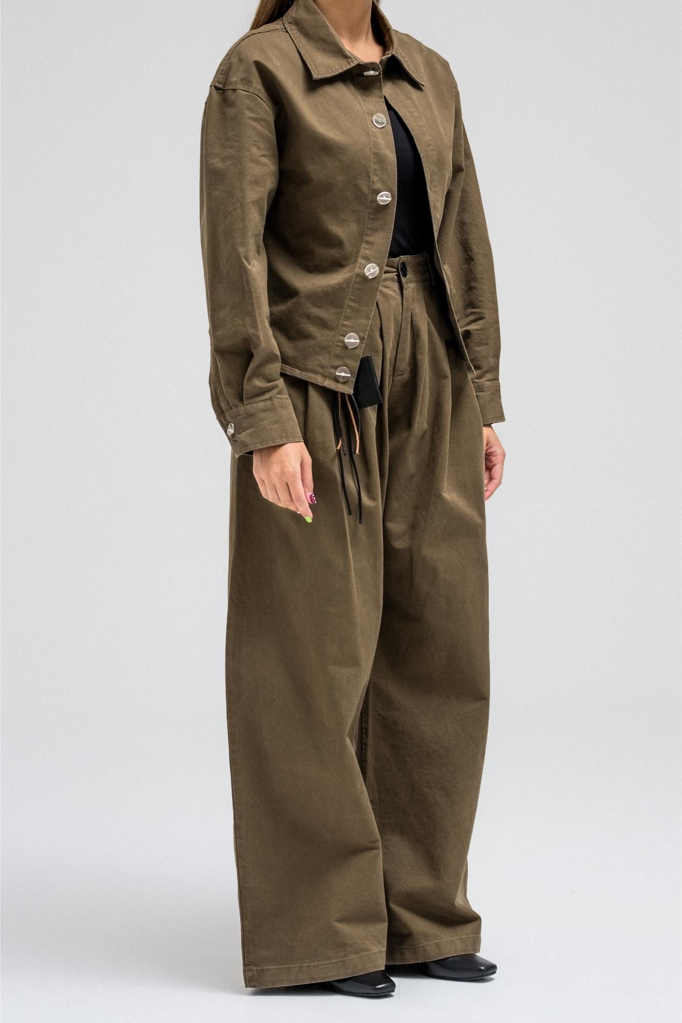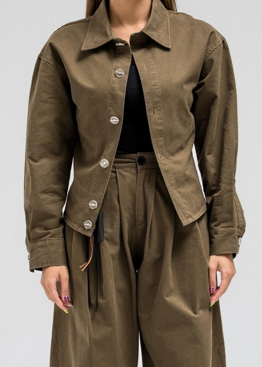 This top features a subtly cinched waist that creates a flattering structured silhouette. Designed with a front button closure and classic collar, it also has a unique high-low hem which is shorter at the back and longer in the front. Perfectly paired with its matching pants for a coordinated and effortlessly chic look.