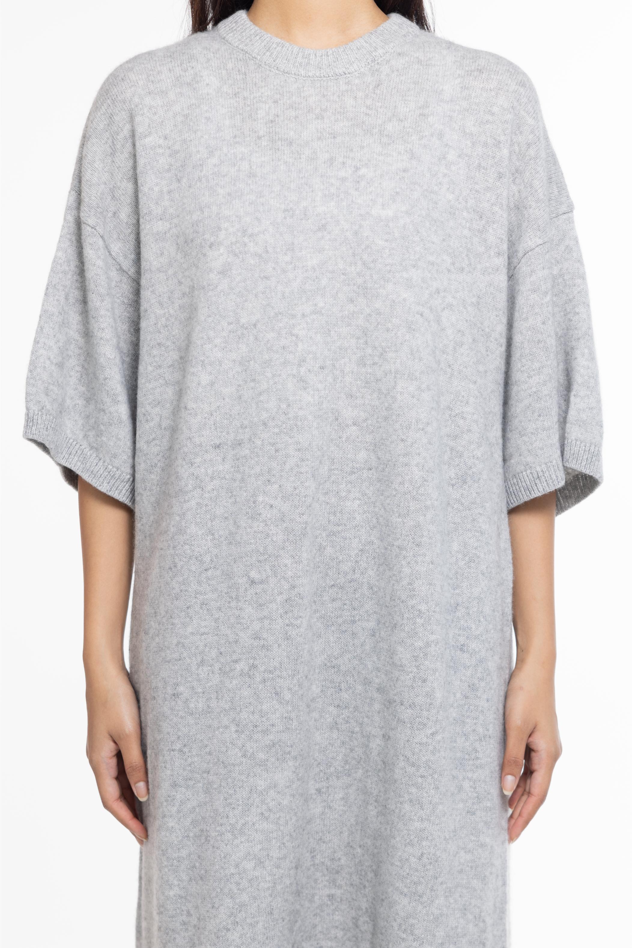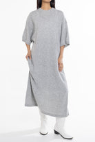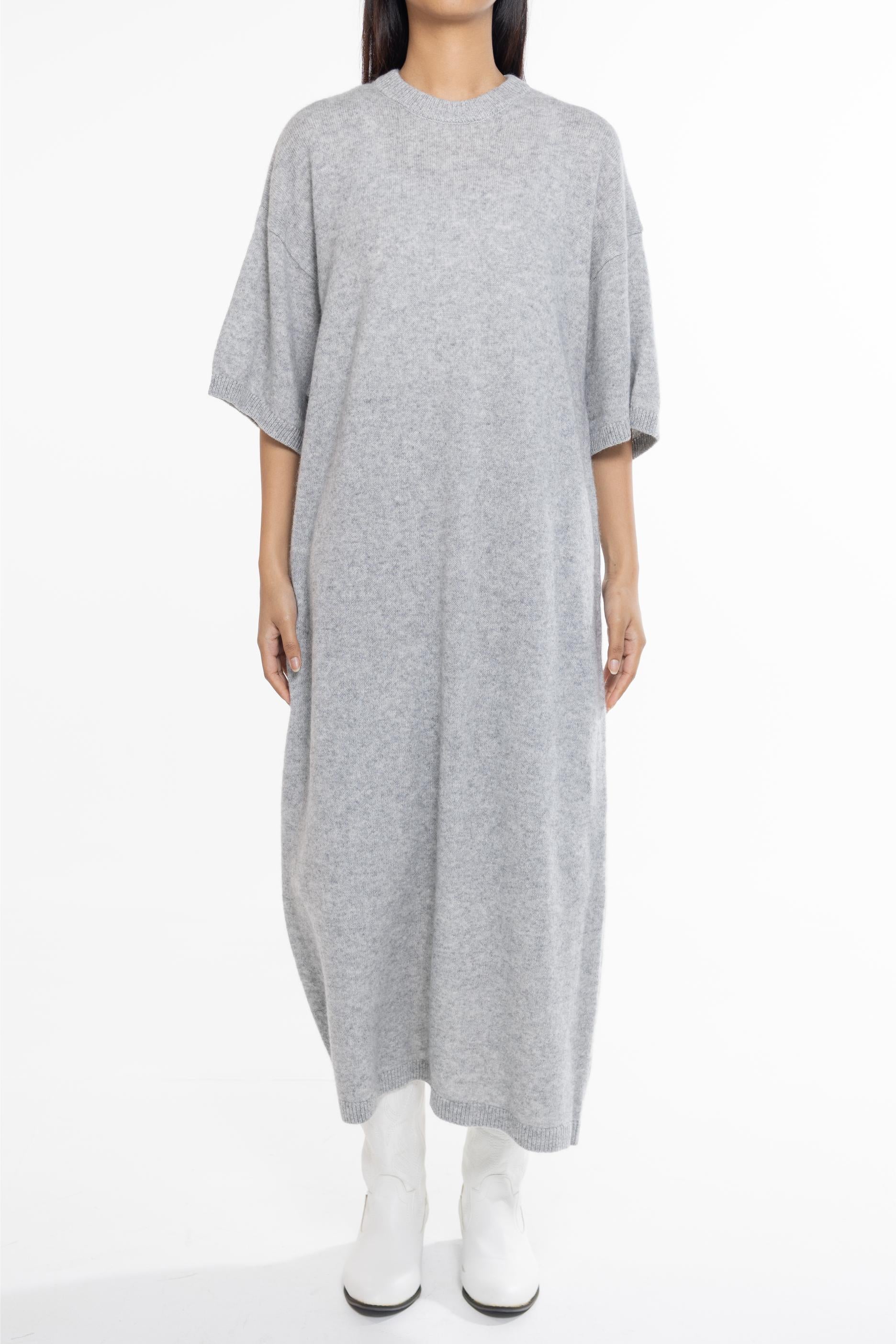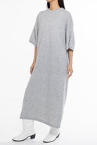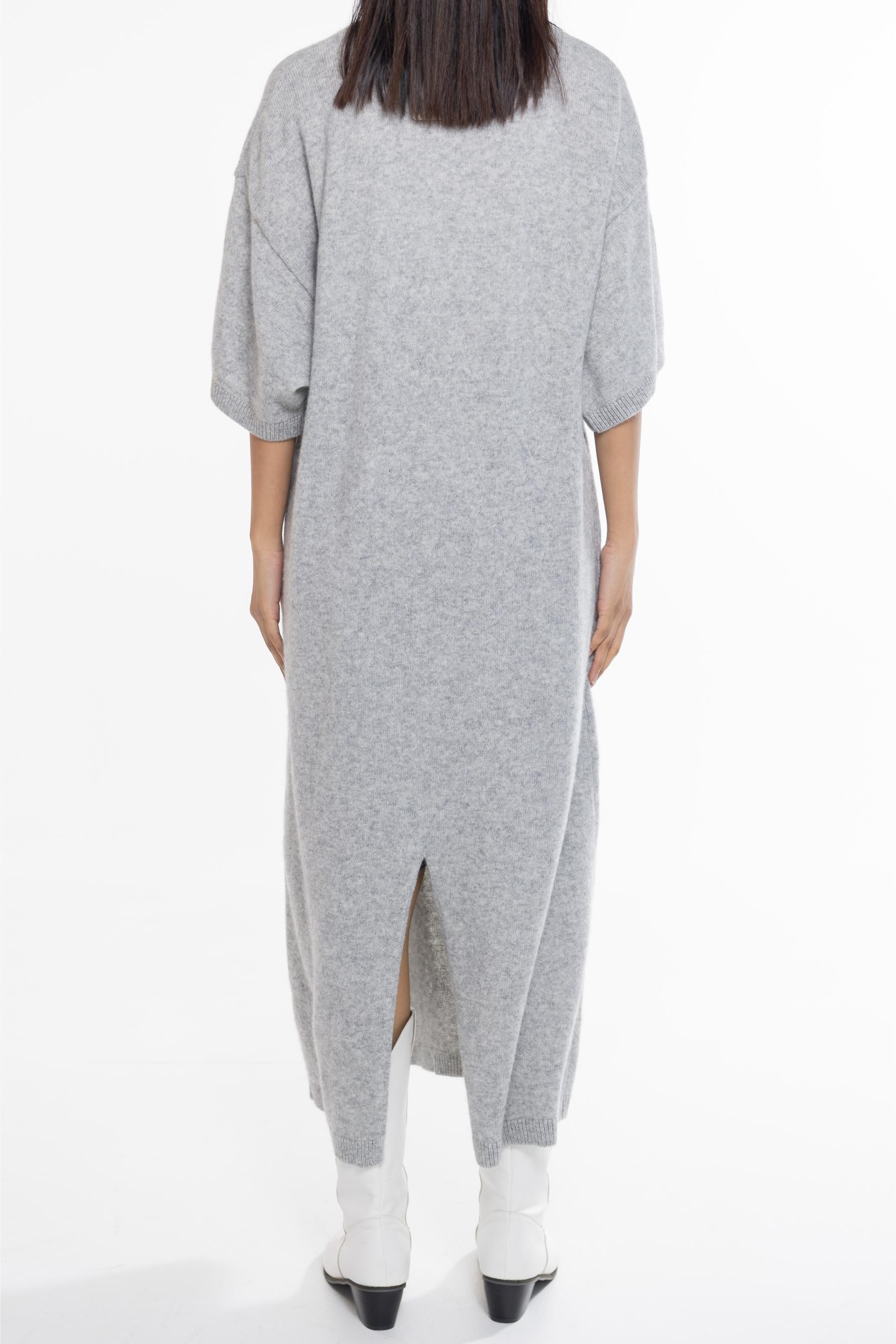 Long Knitted Dress With Elbow-Sleeve. Hemmed with back slit.
