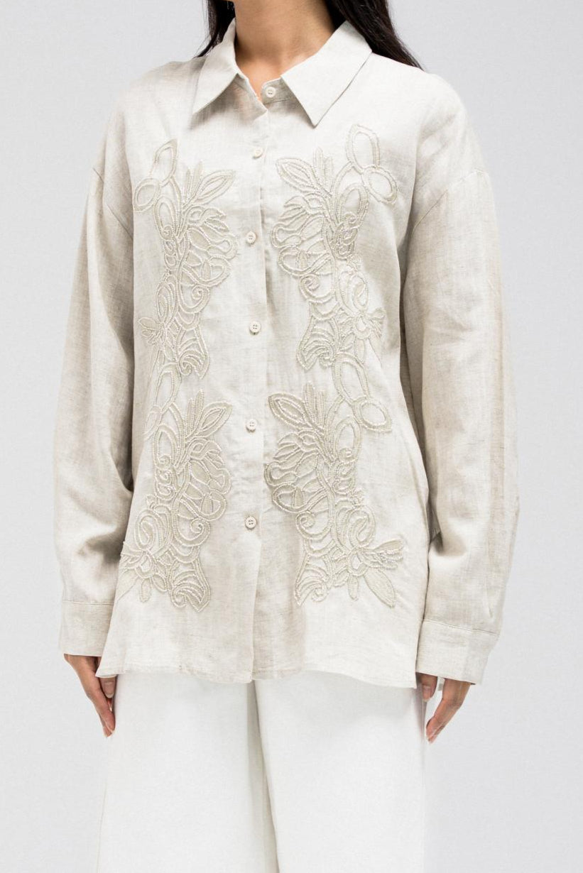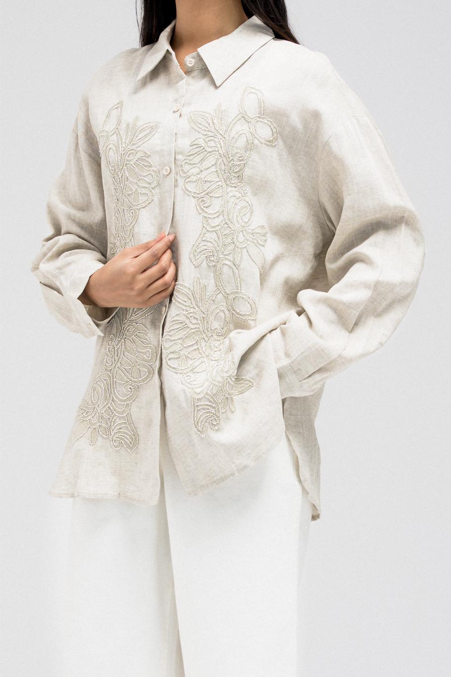 LINEN SHIRT WITH BEADED EMBROIDERY