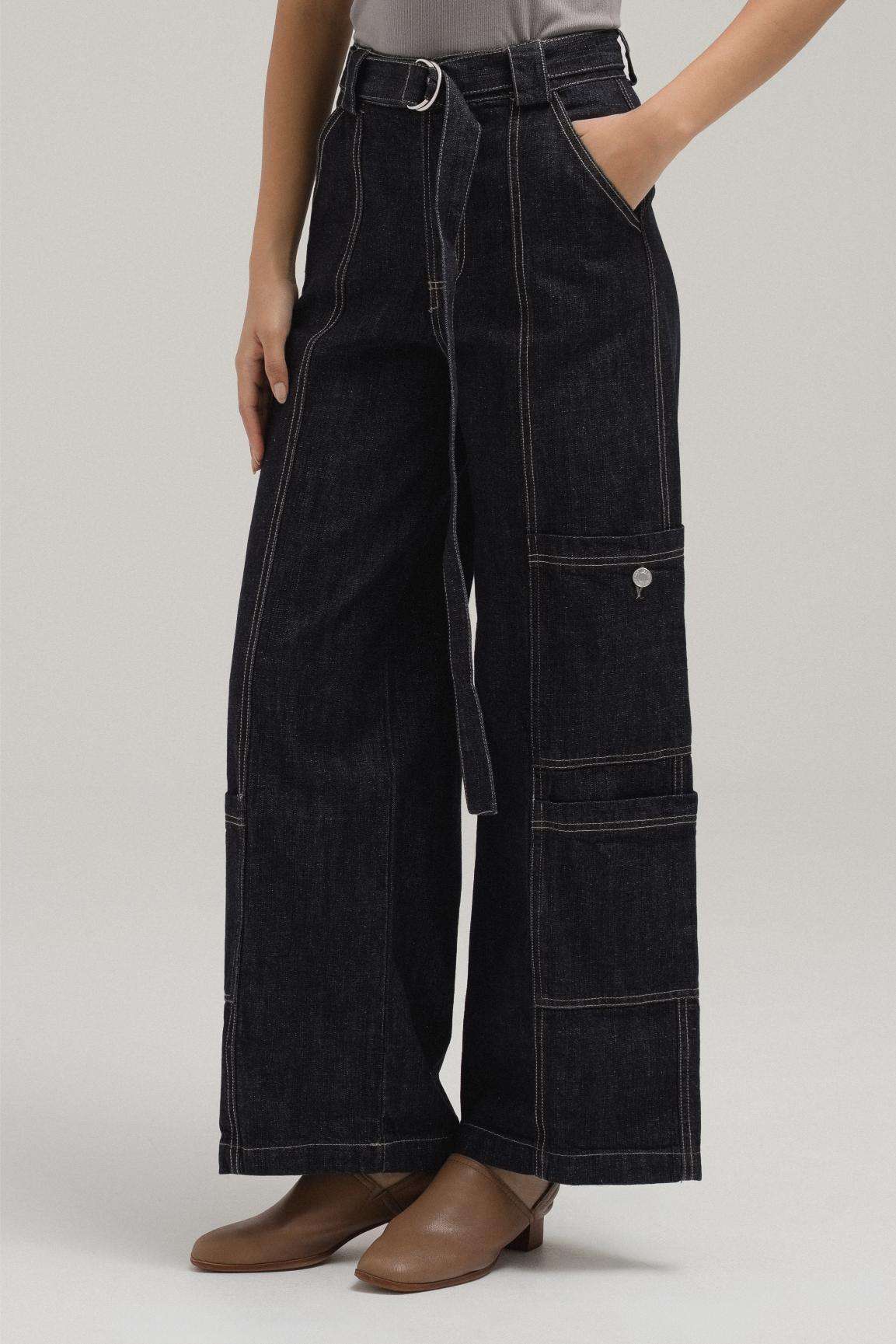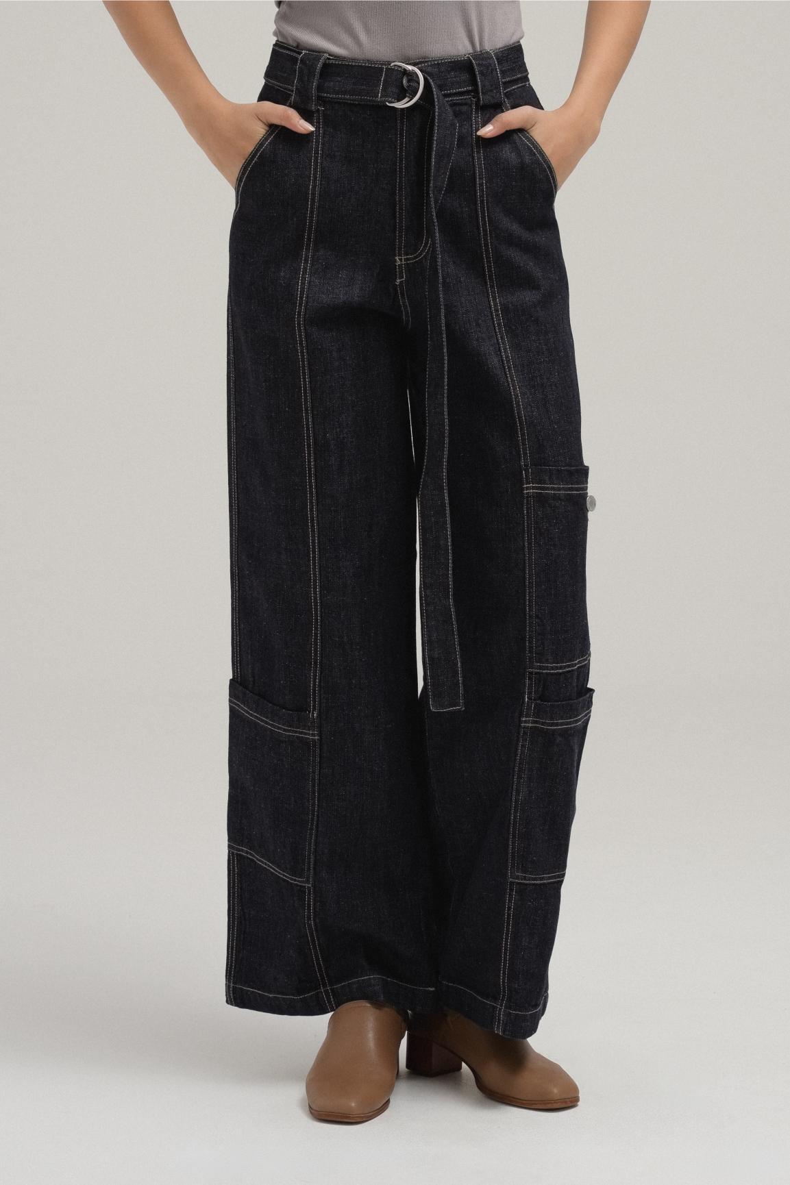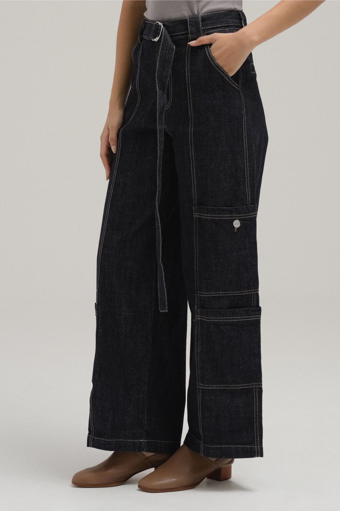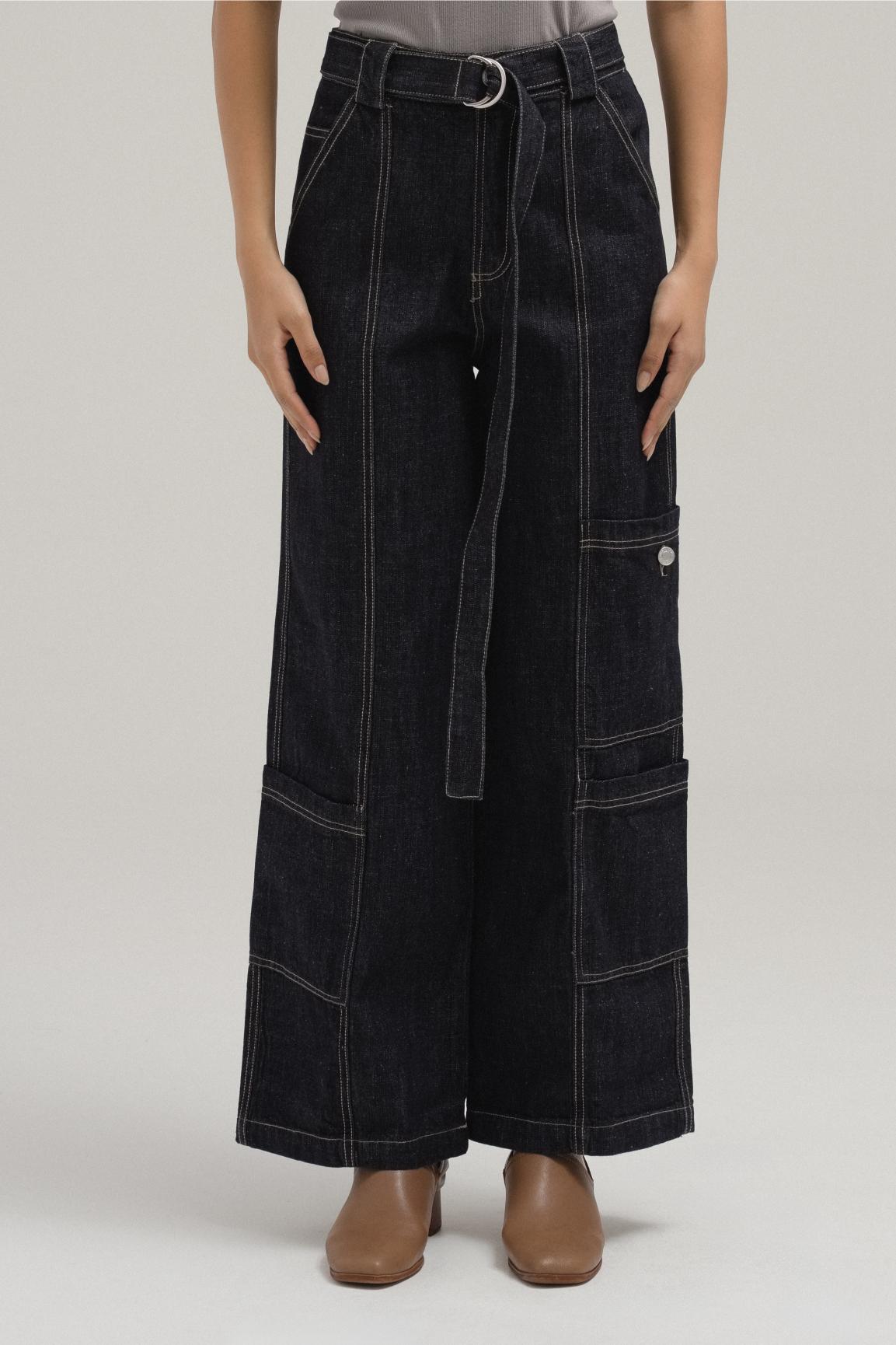 These denim pants are crafted in a straight-leg fit with contrast stitching that highlights the structured design. They feature a front button and zipper closure, side and patch pockets, and subtle utility-style paneling. Comfortable yet elevated, they’re ideal for everyday wear. Complete the outfit with the matching denim vest for a cohesive full look.