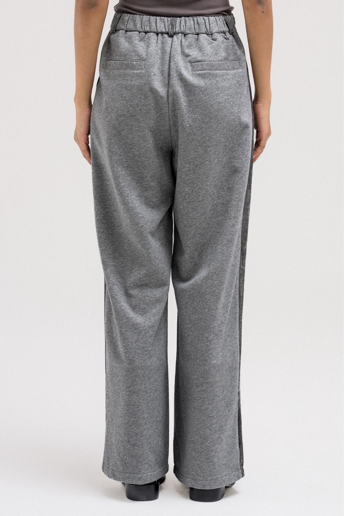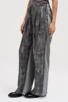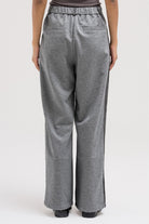 These wide-leg pants feature a unique two-tone design, with contrasting fabric at the front and back for a modern edge. Designed with comfort in mind, they include an elastic waistband with adjustable drawstrings. Effortlessly versatile, they pair perfectly with the matching detachable hooded blazer for a full coordinated look.