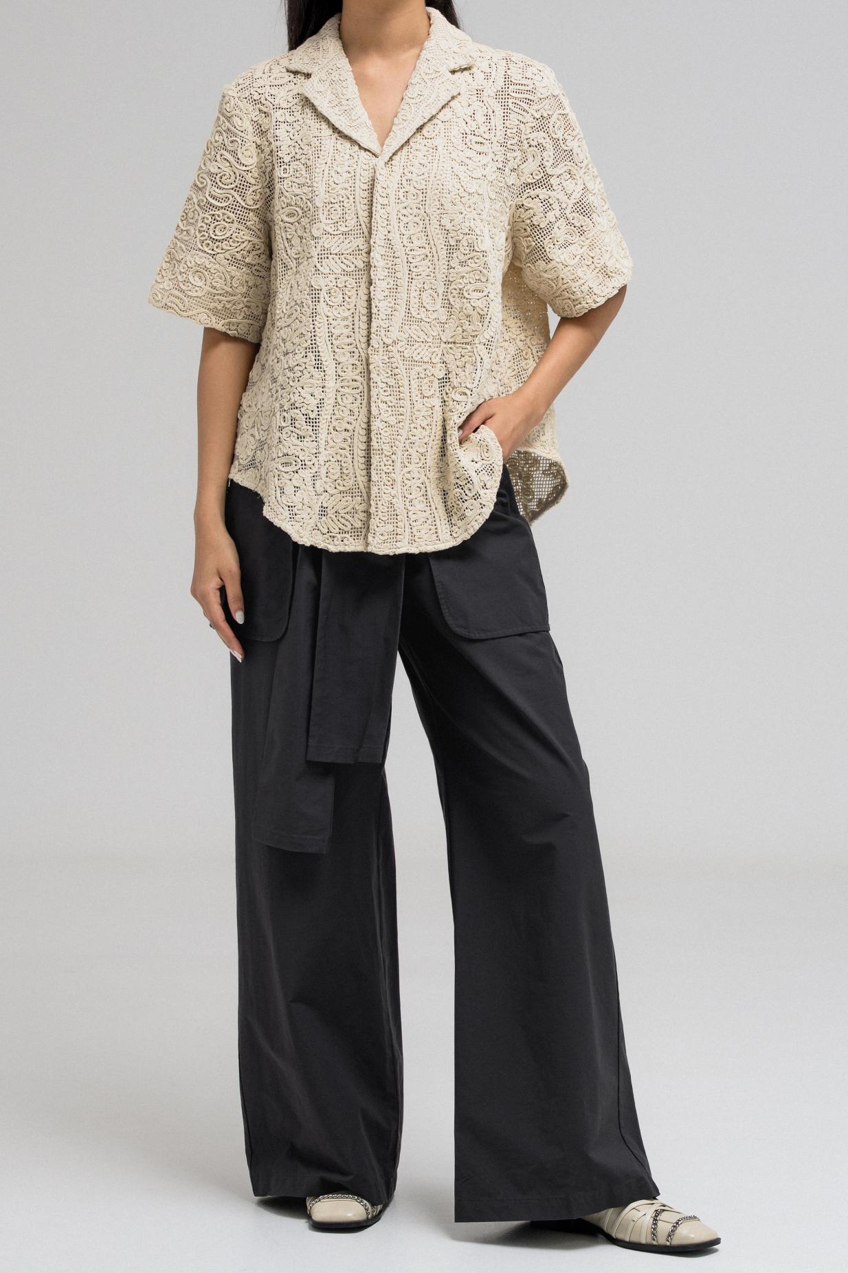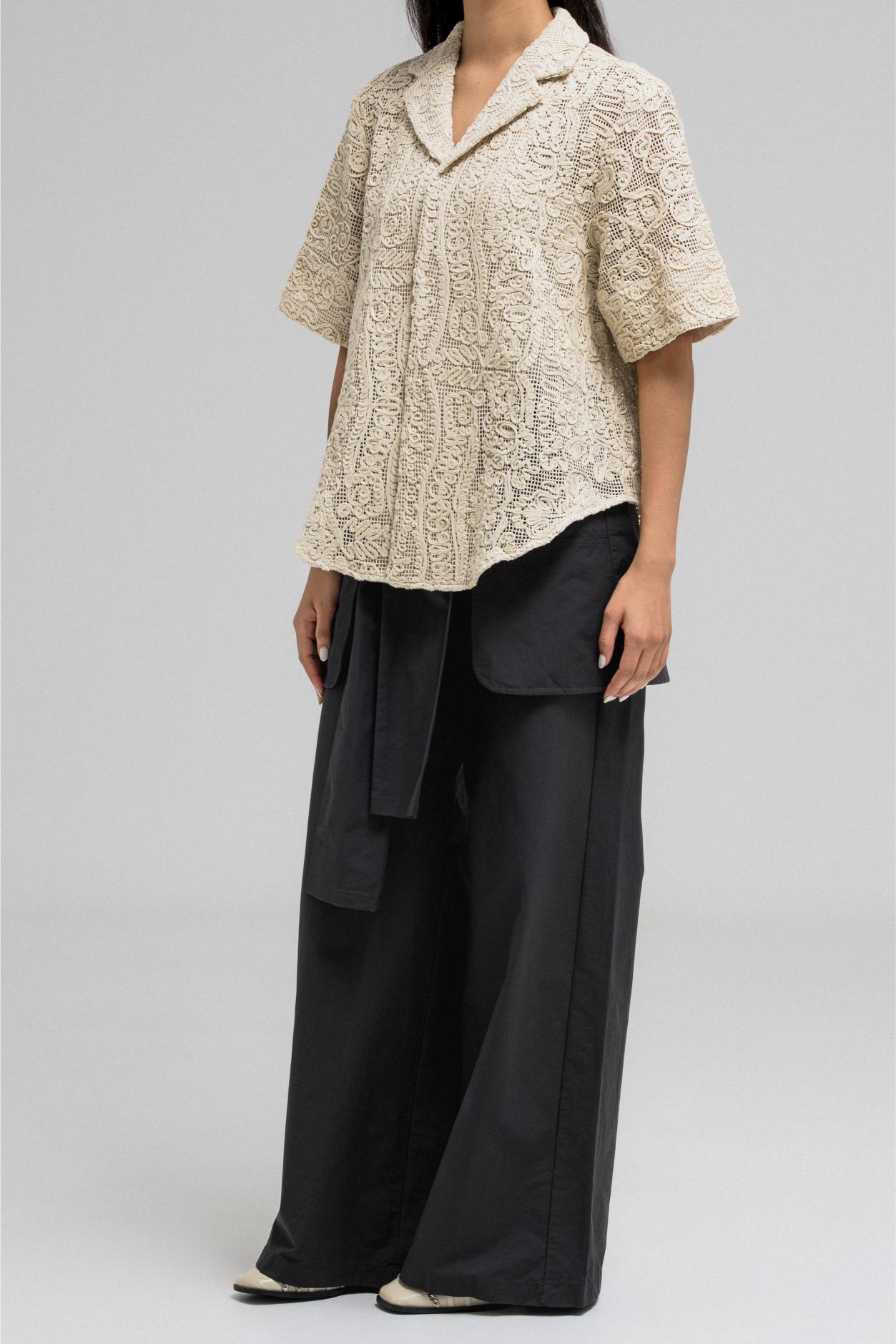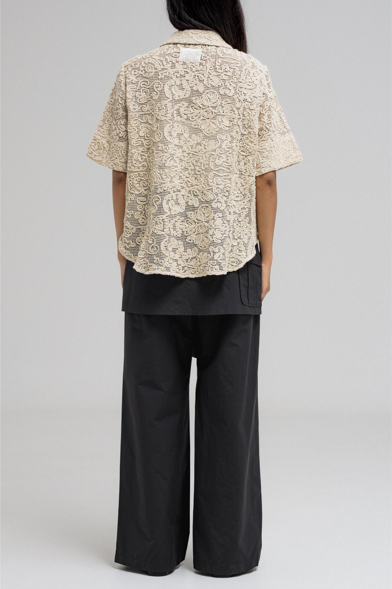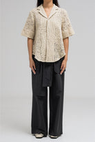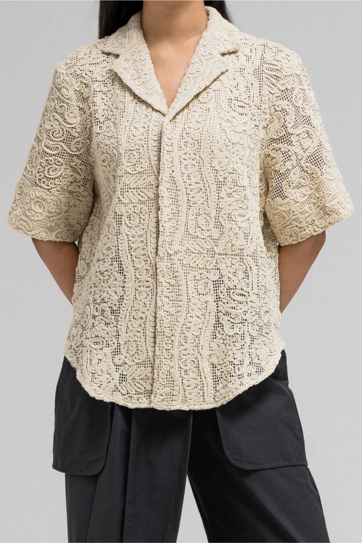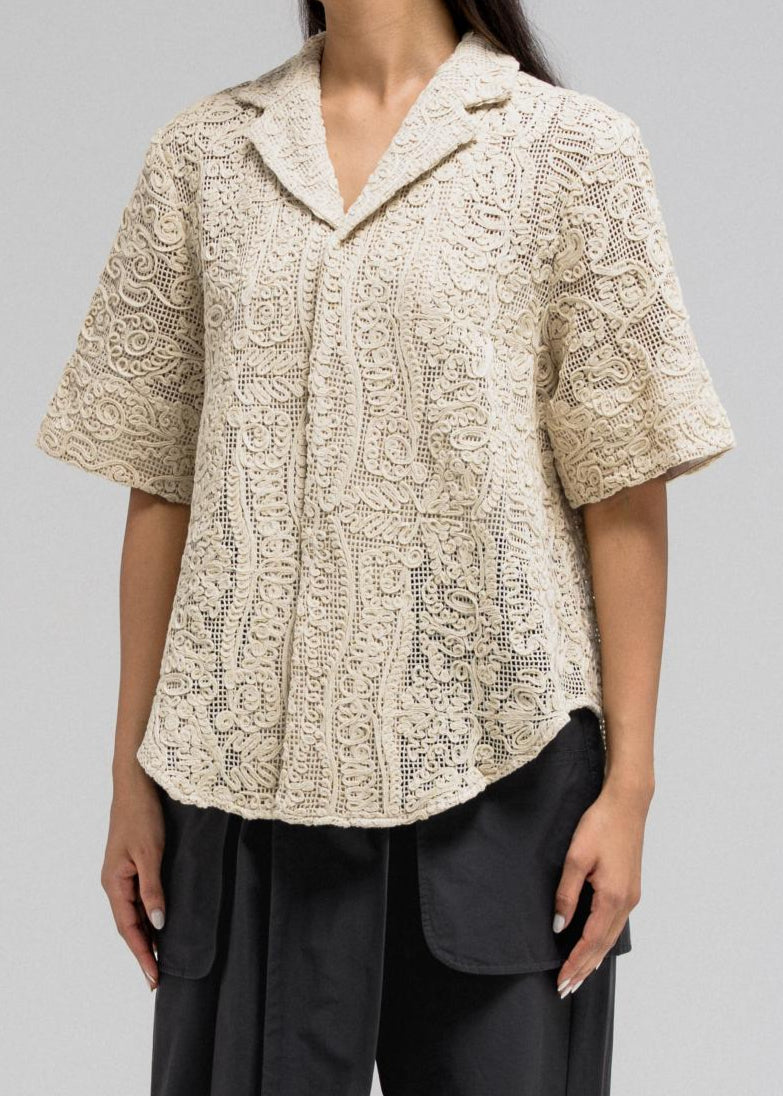This lightweight crochet-design jacket features a semi see-through texture with a short sleeve cut and front button closure. It’s styled with a notched lapel collar that adds a classic, relaxed touch to the open neckline. Perfect for layering over a tank or wearing alone for an effortlessly chic look.