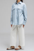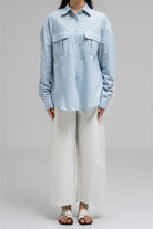 This top features classic shirt elements including a structured collar and front button closure. Made from breathable linen fabric. The two flap pockets on the chest add a structured, utility-inspired detail to this effortless wardrobe staple.