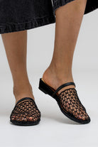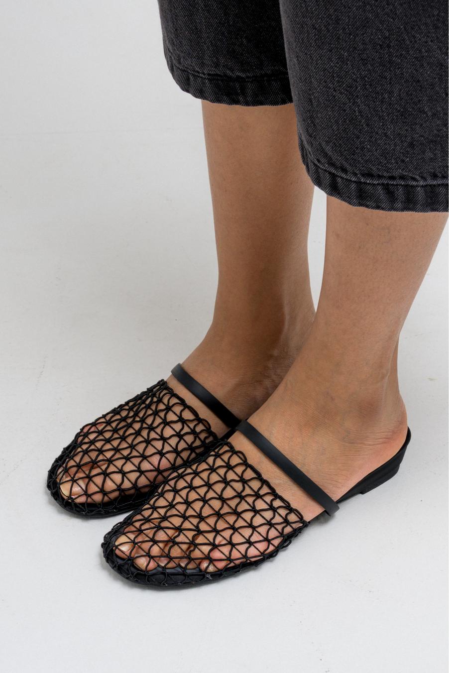 Flats feature a modern open mesh net design that wraps the foot with a stylish, breathable texture.