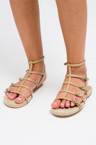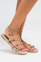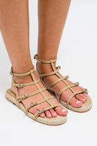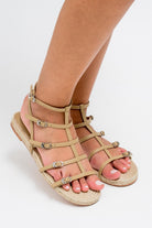 These sandals feature a multi-strap design with adjustable small buckles, offering both style and a customizable fit. The flat sole provides everyday comfort, while the ankle-wrap detail adds a modern, feminine touch.