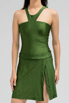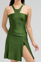 WRAP-NECK SWIM SET WITH SKIRTED SHORTS