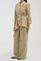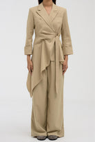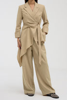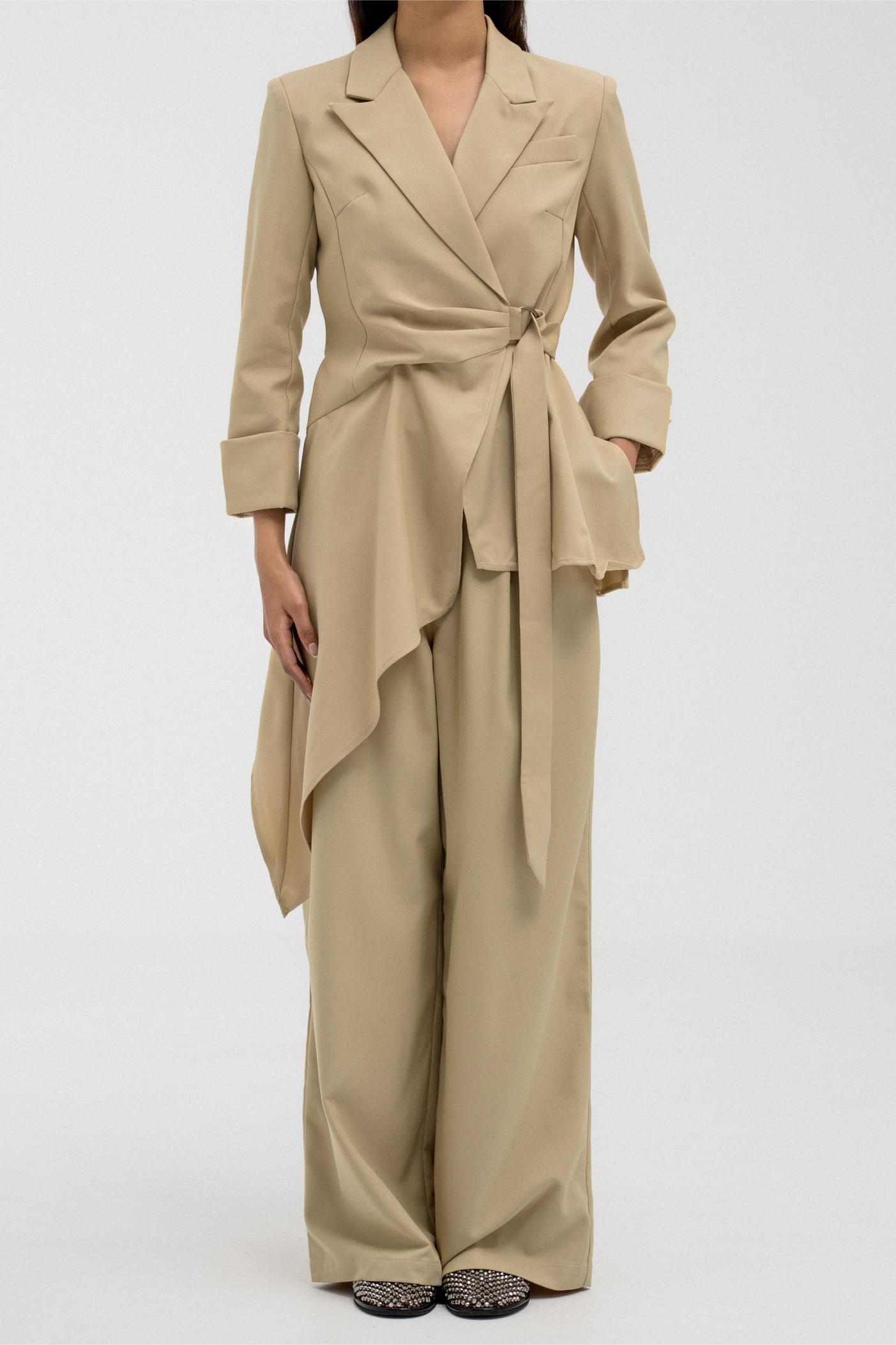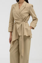 ASYMMETRICAL BLAZER WITH ATTACHED BELT