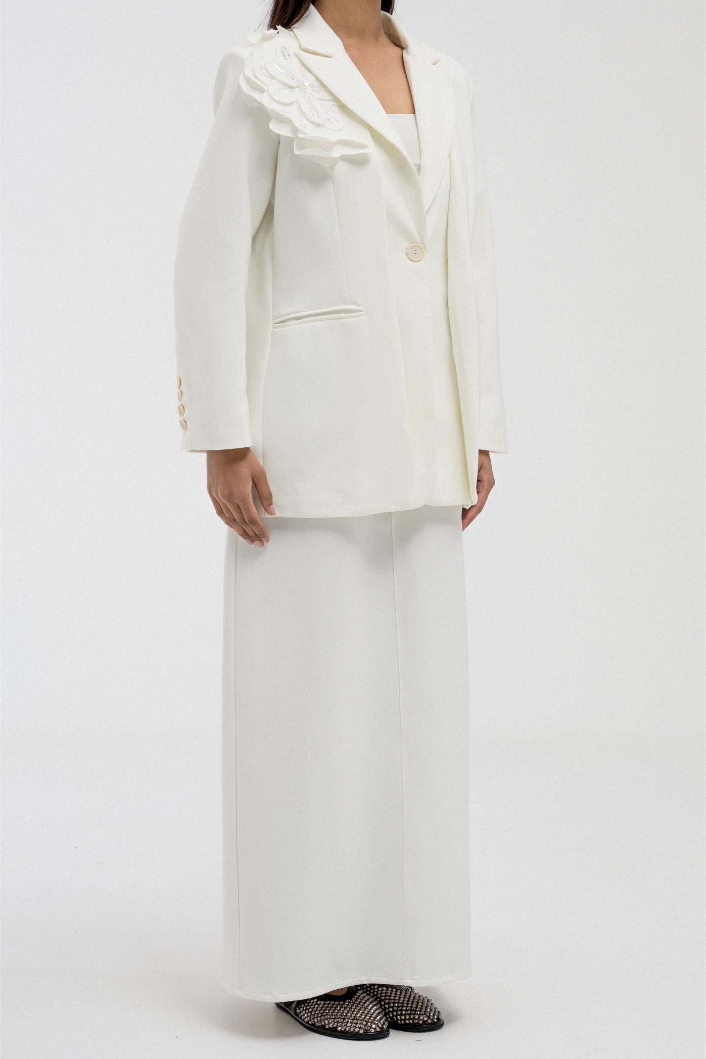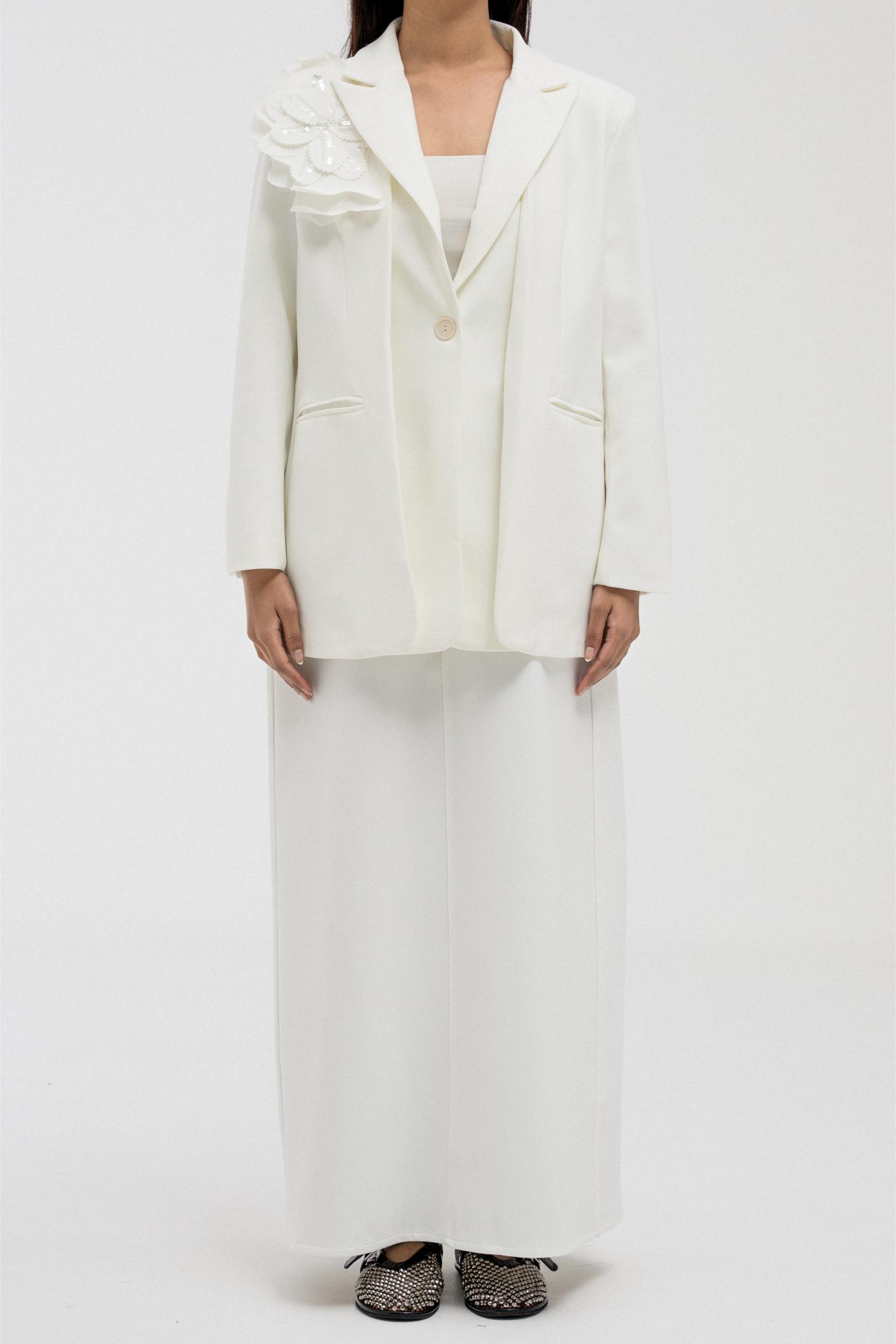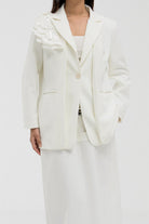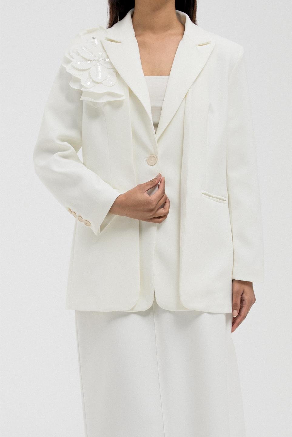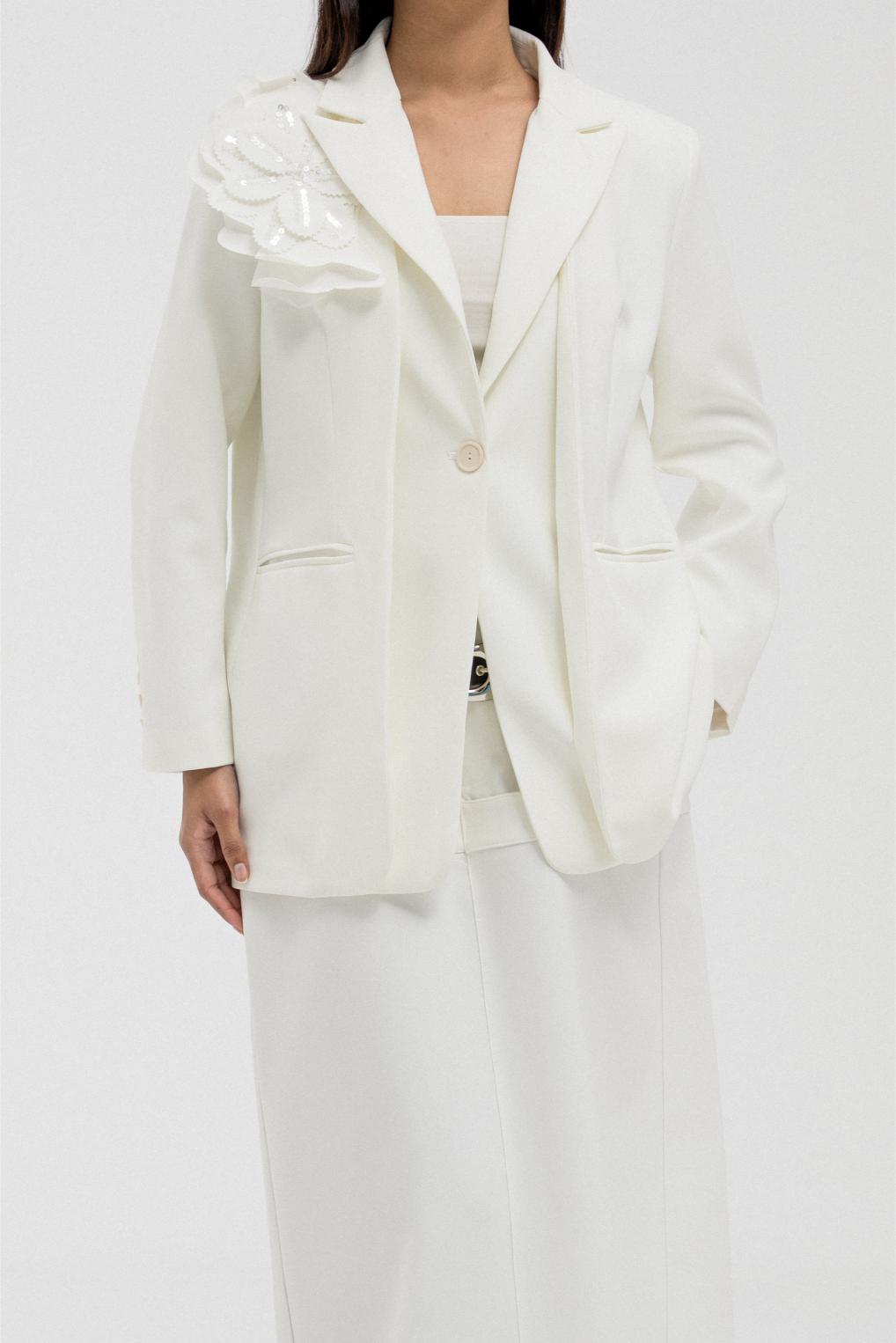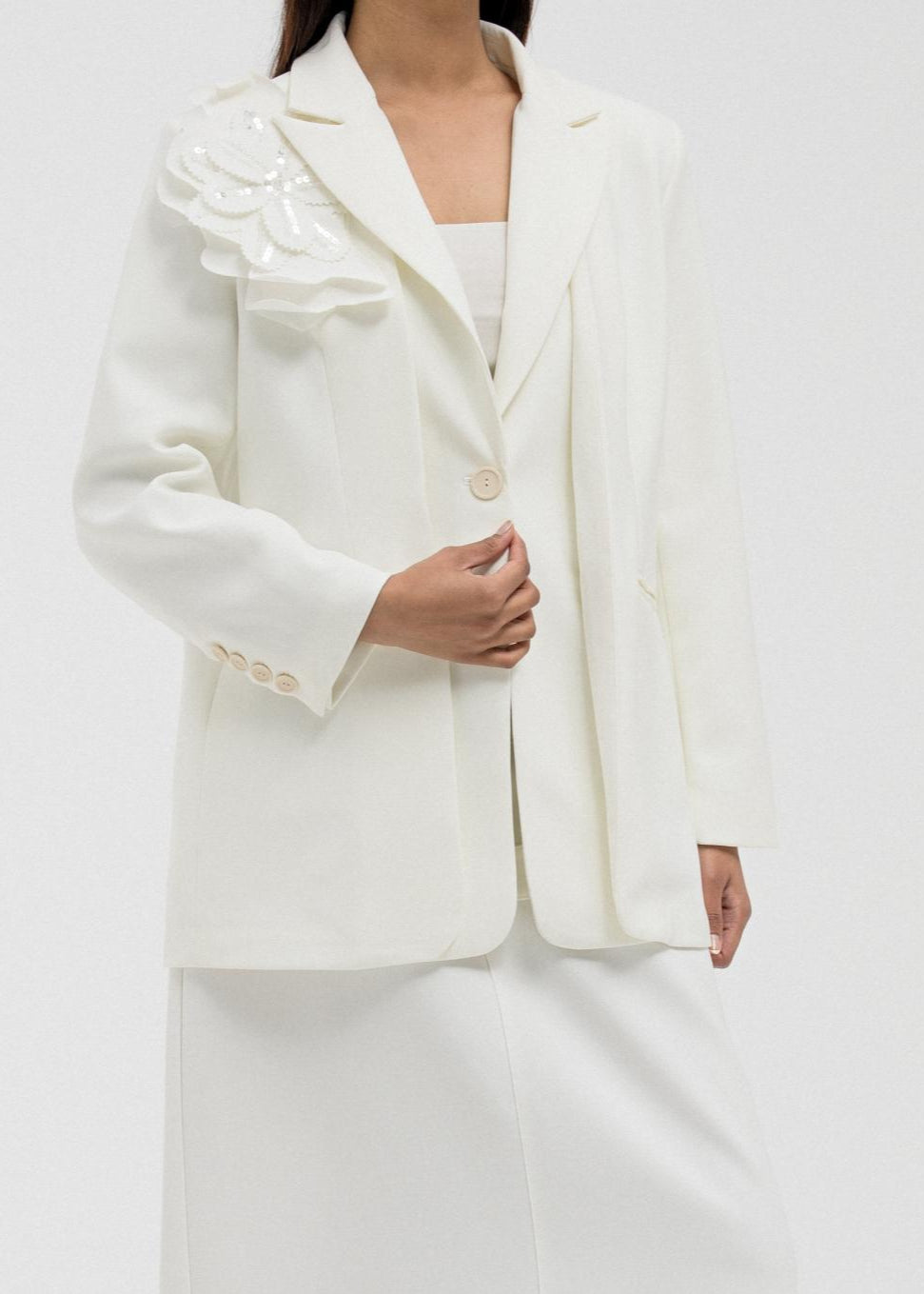 Tailored blazer. Featuring a bold 3D floral appliqué with silver embellishments. Structured fit. Single-button closure.