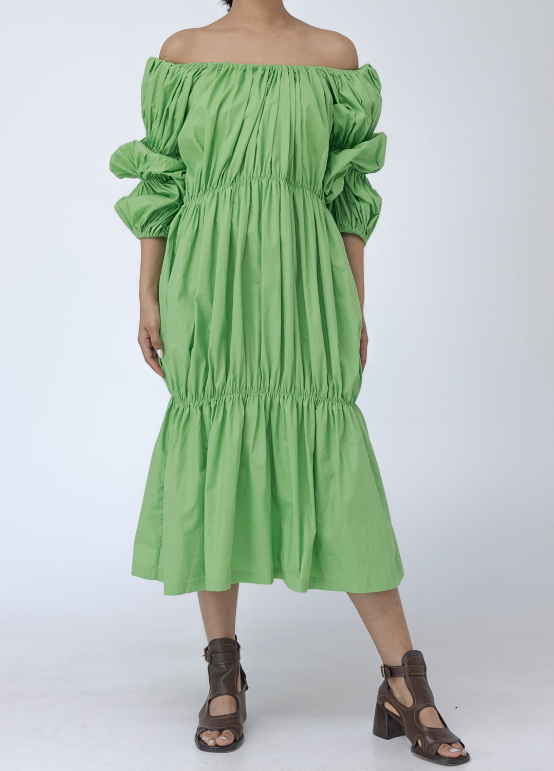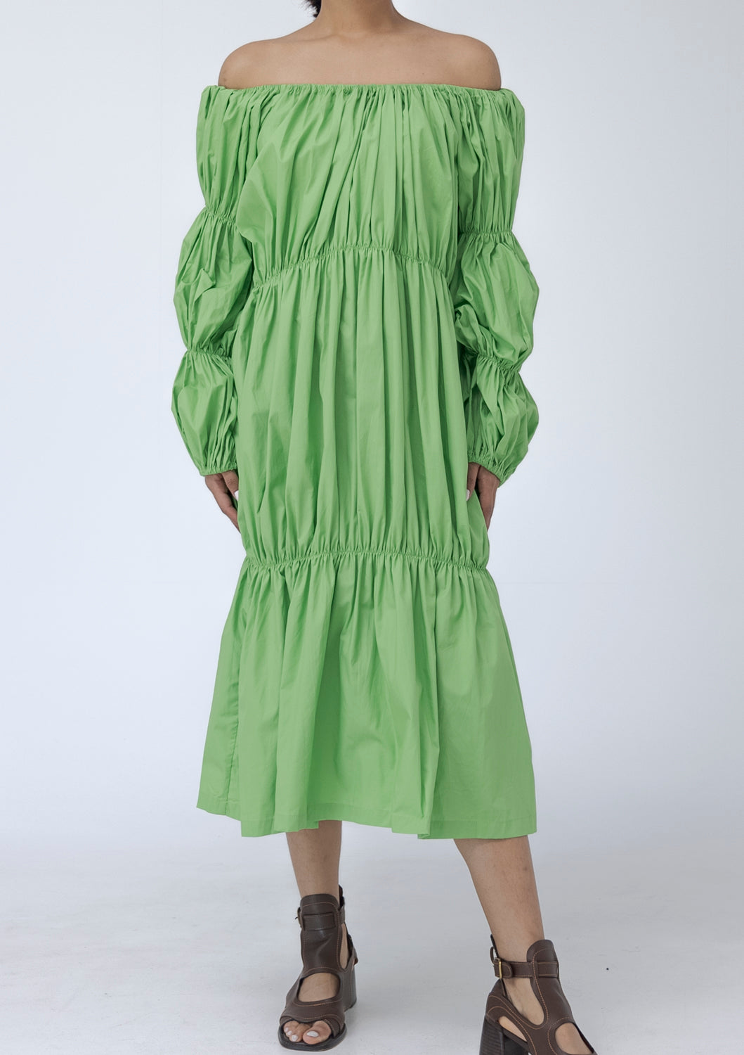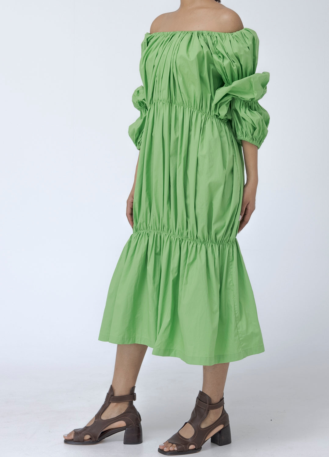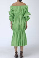 Ruffles off shoulder midi dress.