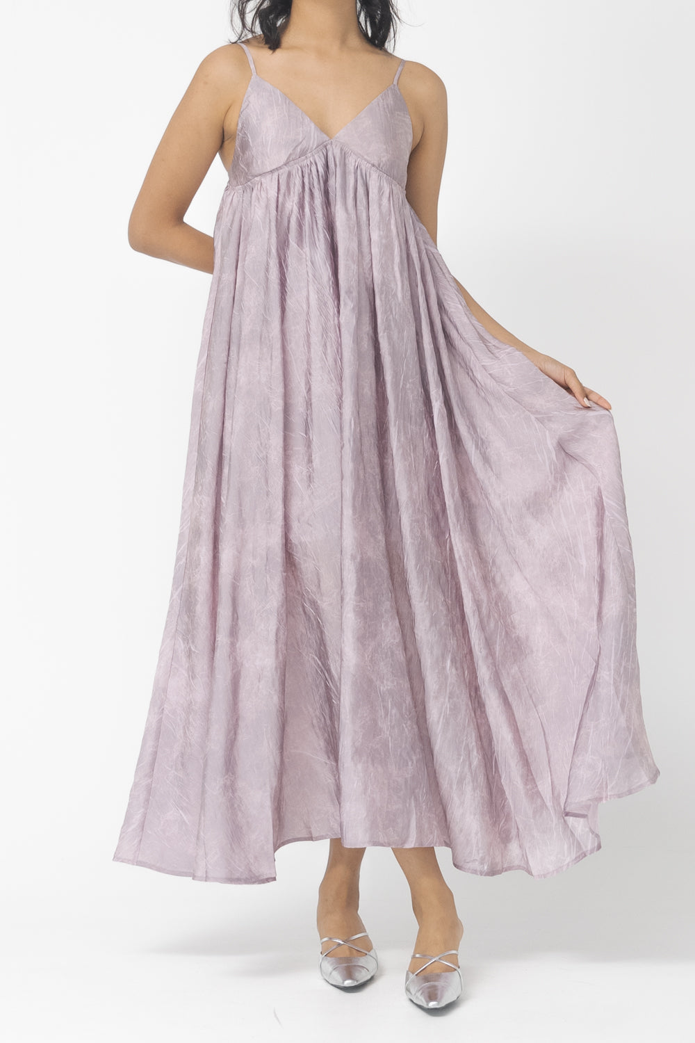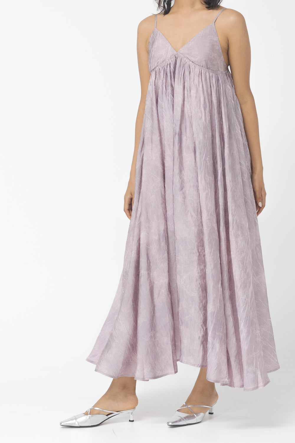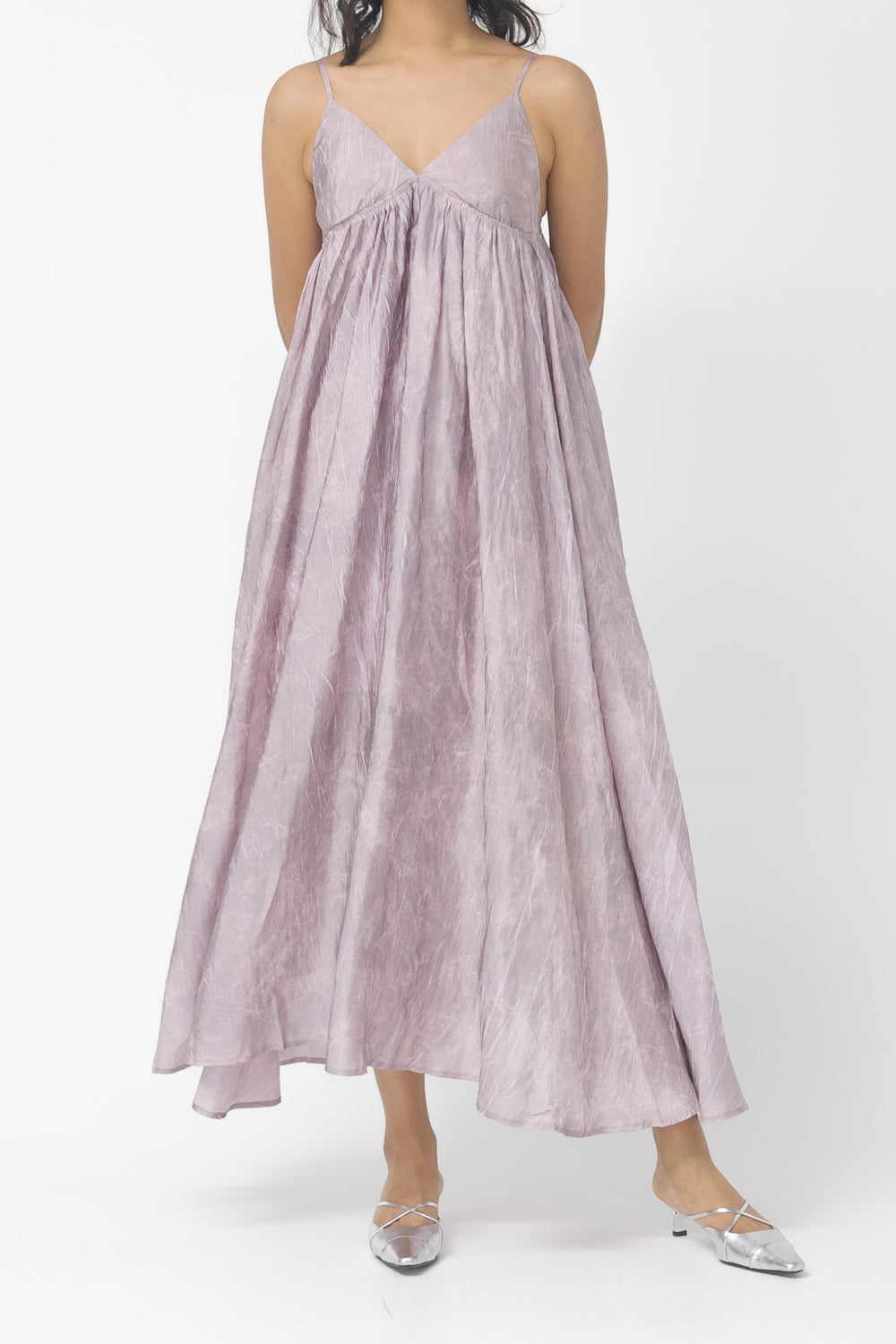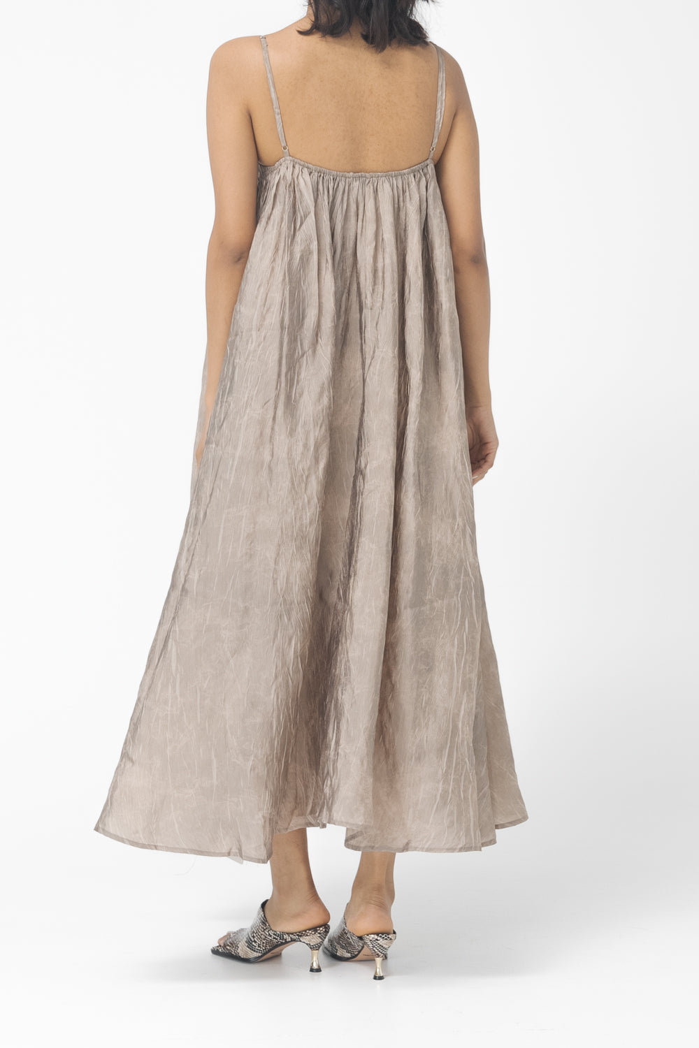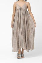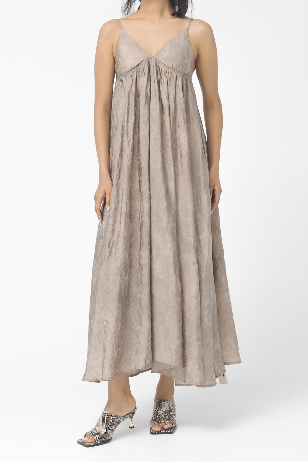 V-neck, maxi length, strap dress.