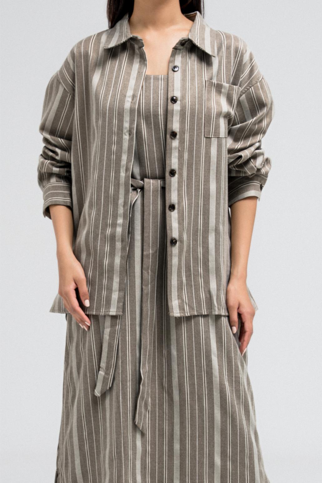Flowy striped dress features thin adjustable string straps and comes with a detachable matching belt to cinch the waist as desired. Lightweight and easy to style, it pairs perfectly with the matching shirt for a coordinated look.
