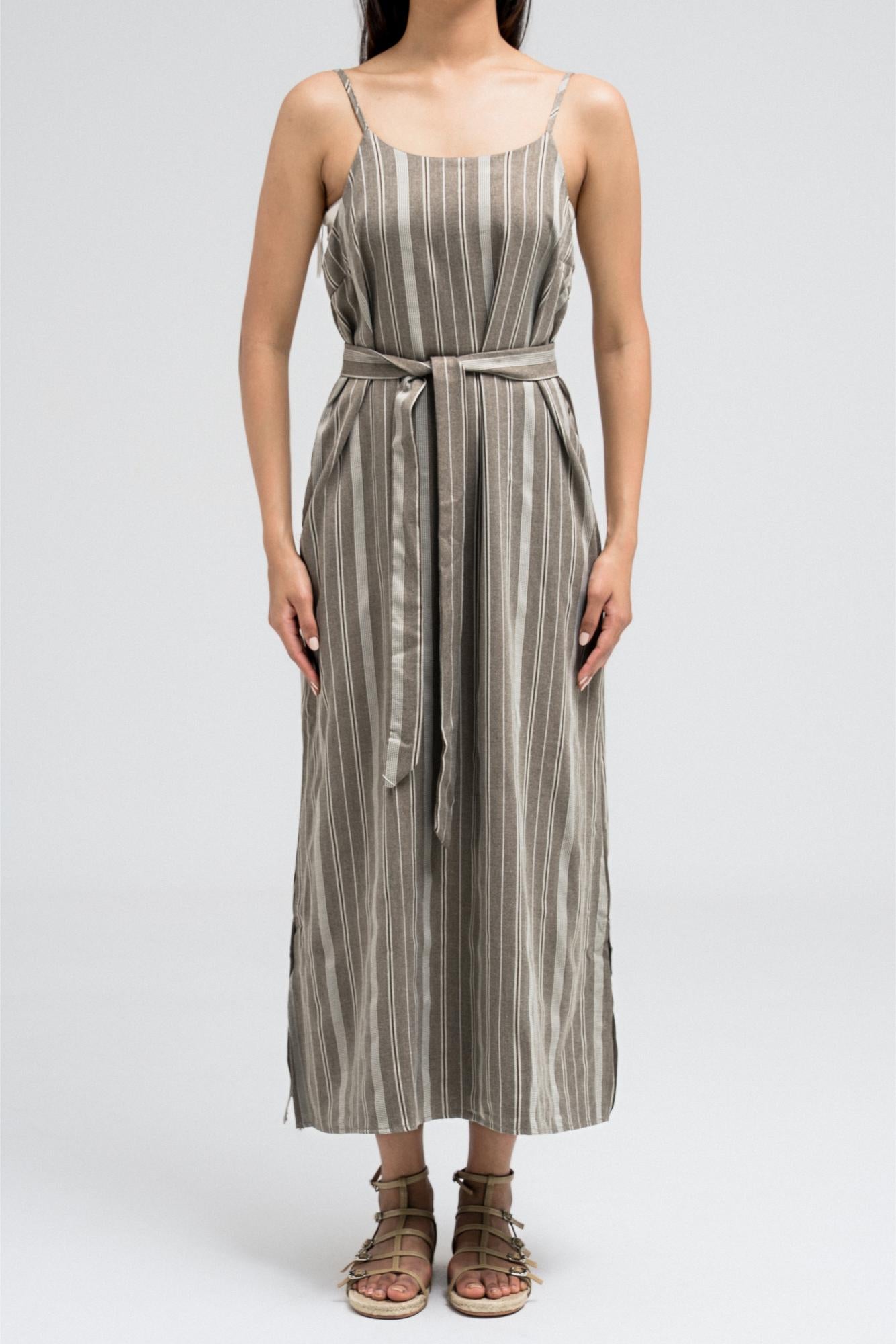 STRIPED STRING STRAP DRESS