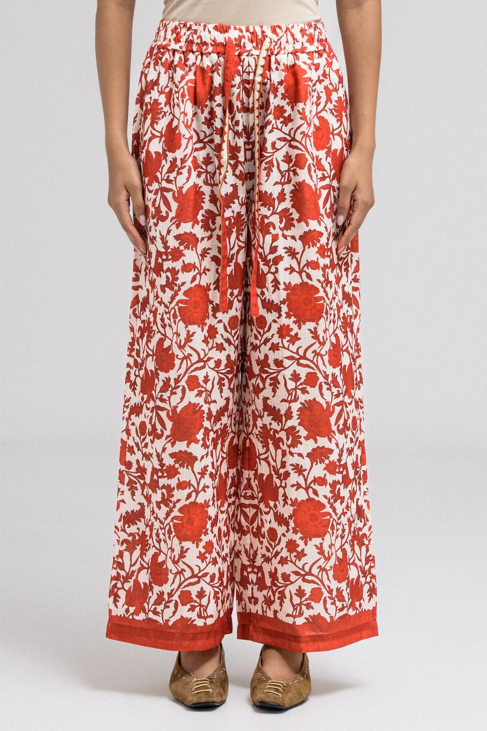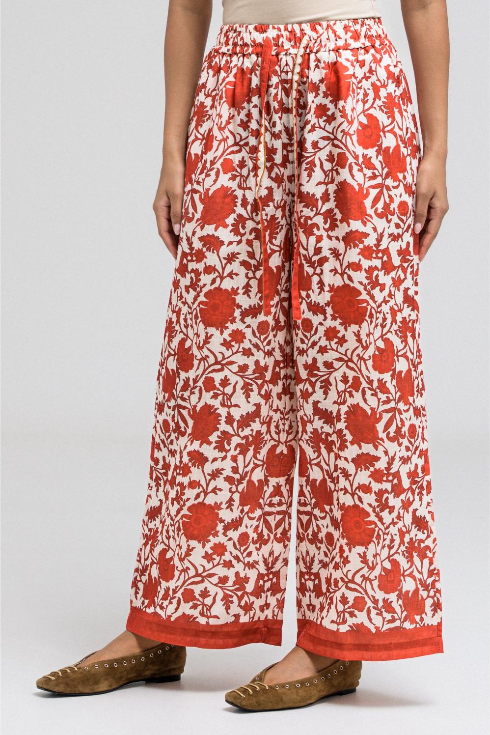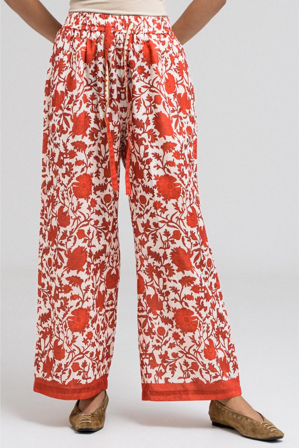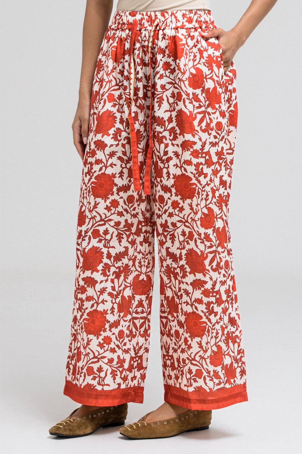 LINEN PANTS WITH COLORFUL FLORAL PRINT WITH DRAWSTRINGS