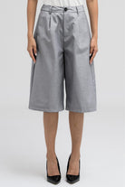 These Bermuda shorts feature a clean, tailored style perfect for polished looks. Designed with a structured fit, they include a front button and zipper closure for a classic finish. Style them with the matching blazer for a sharp, coordinated outfit.