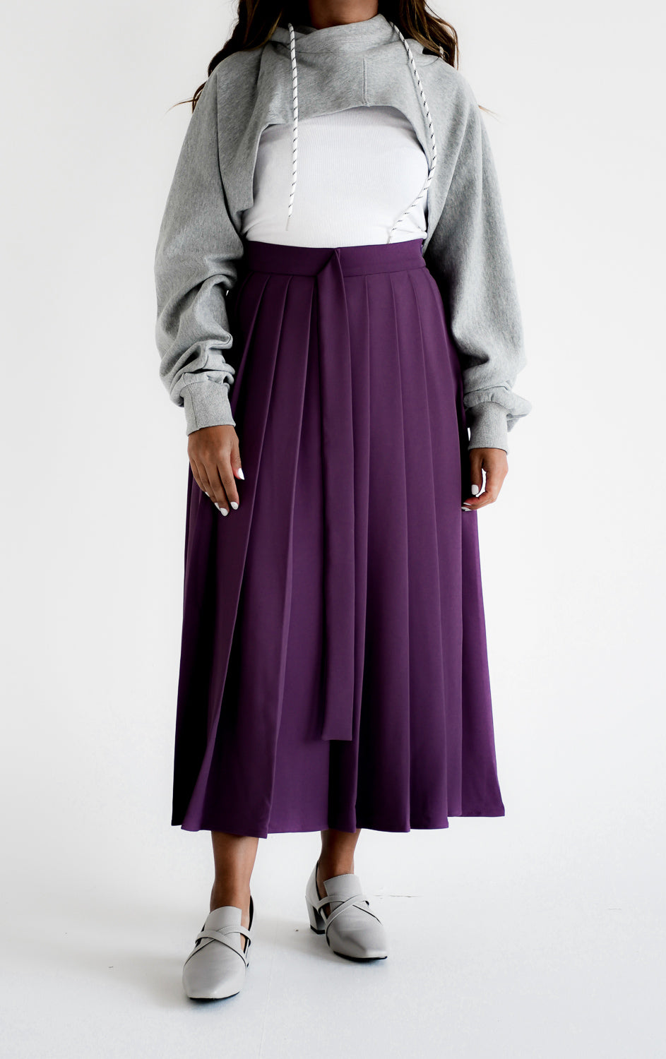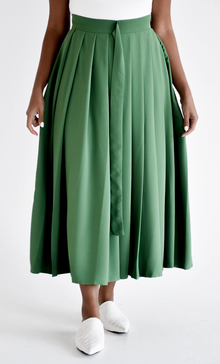 Pleated midi skirt with belt detail