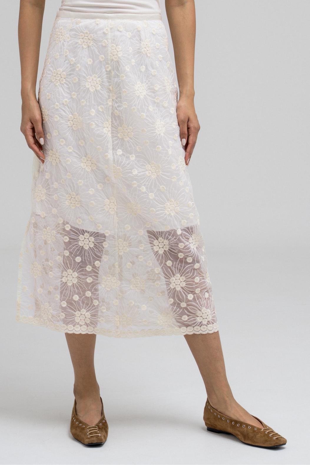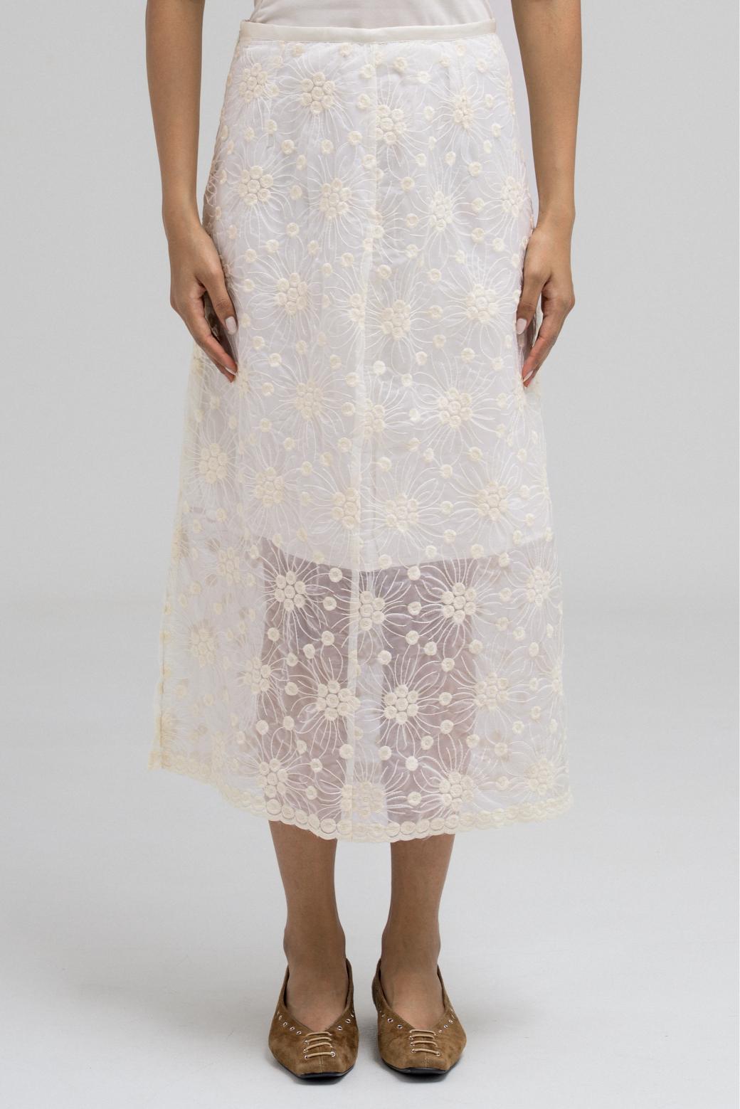 EMBROIDERED DUAL-LAYER MESH SKIRT