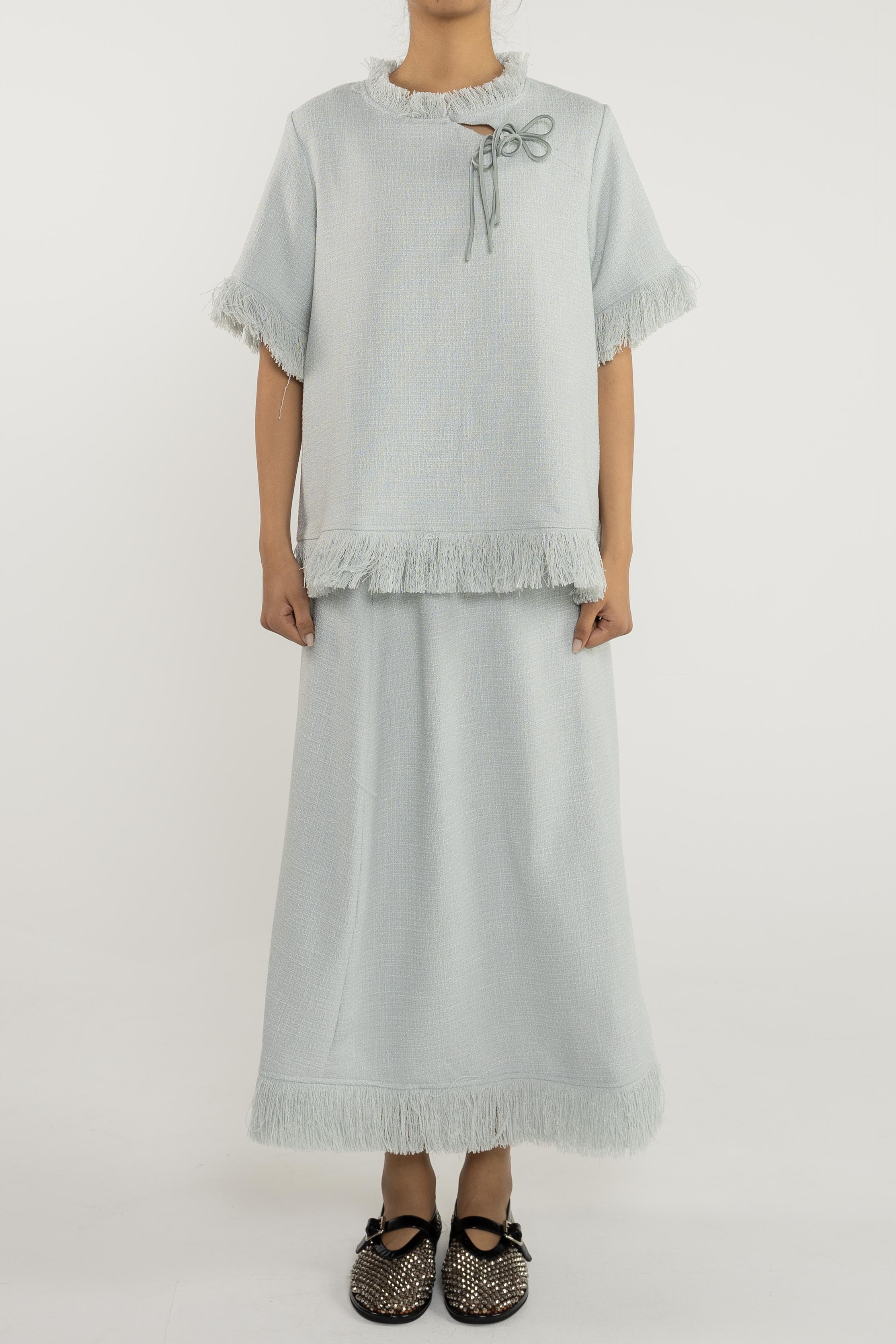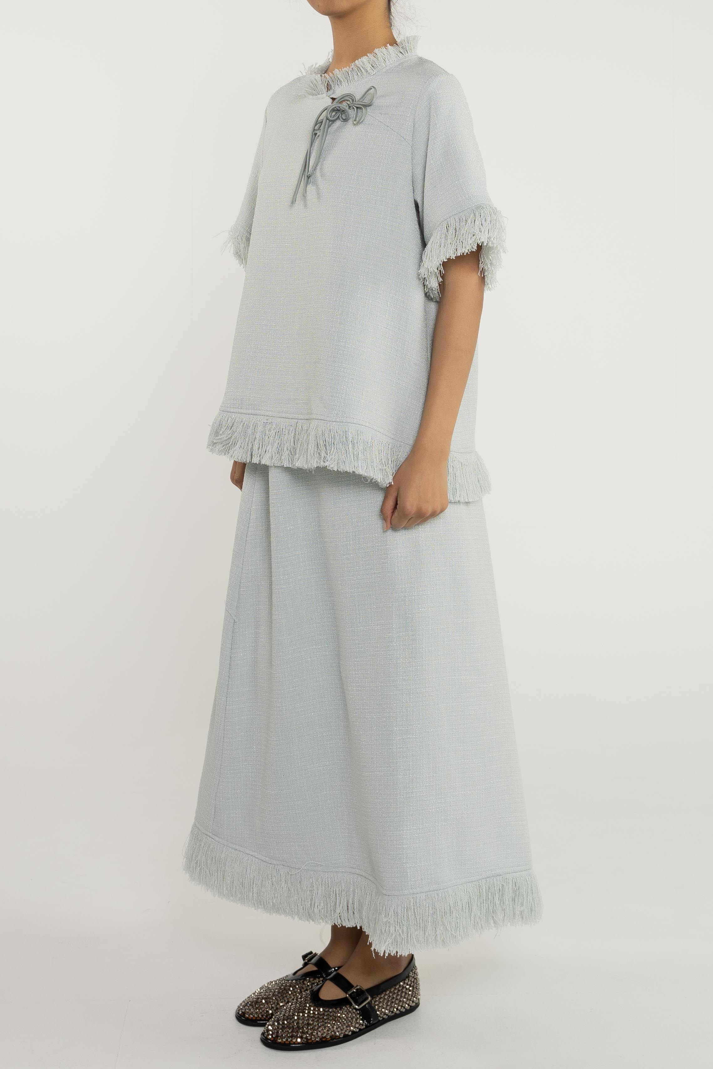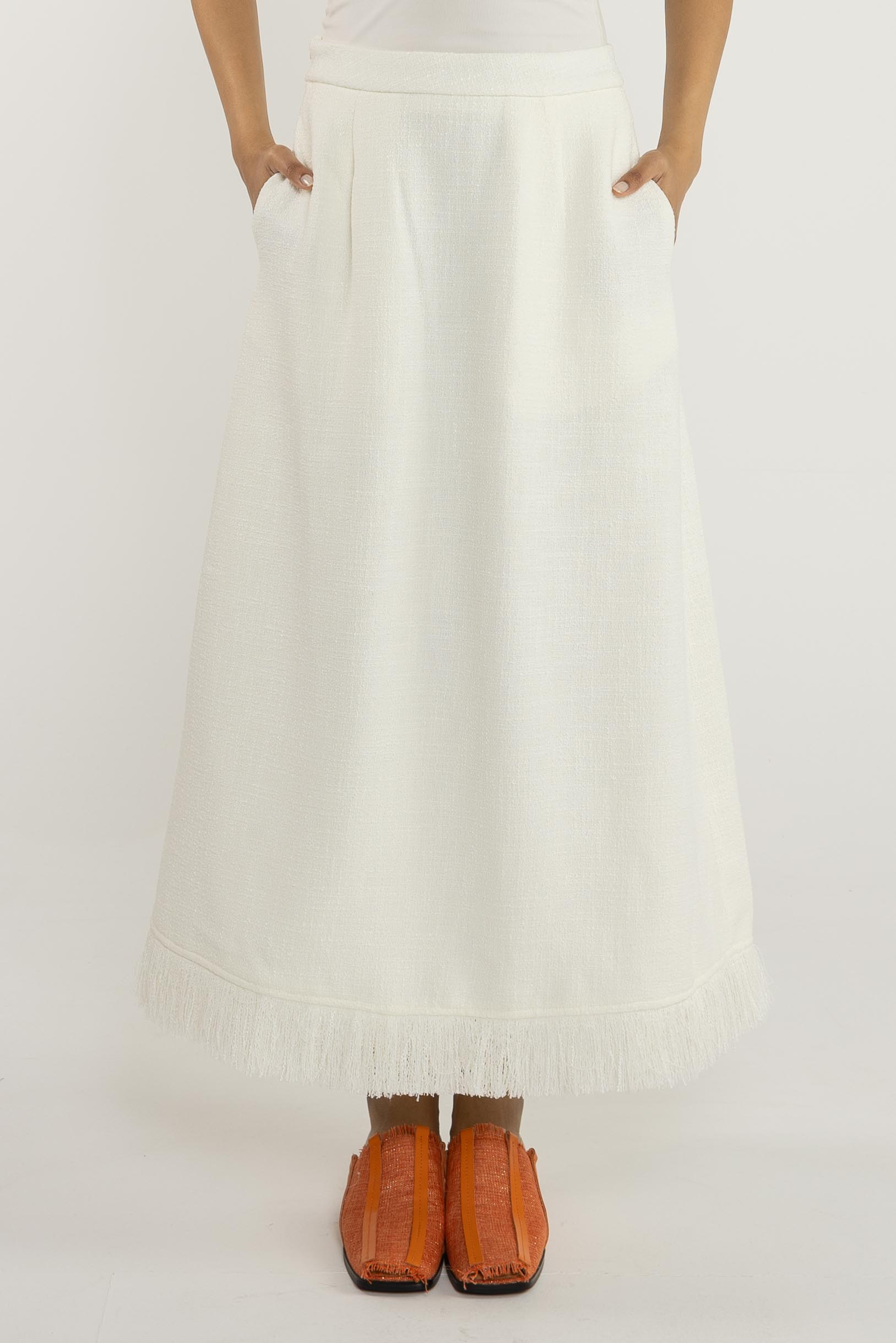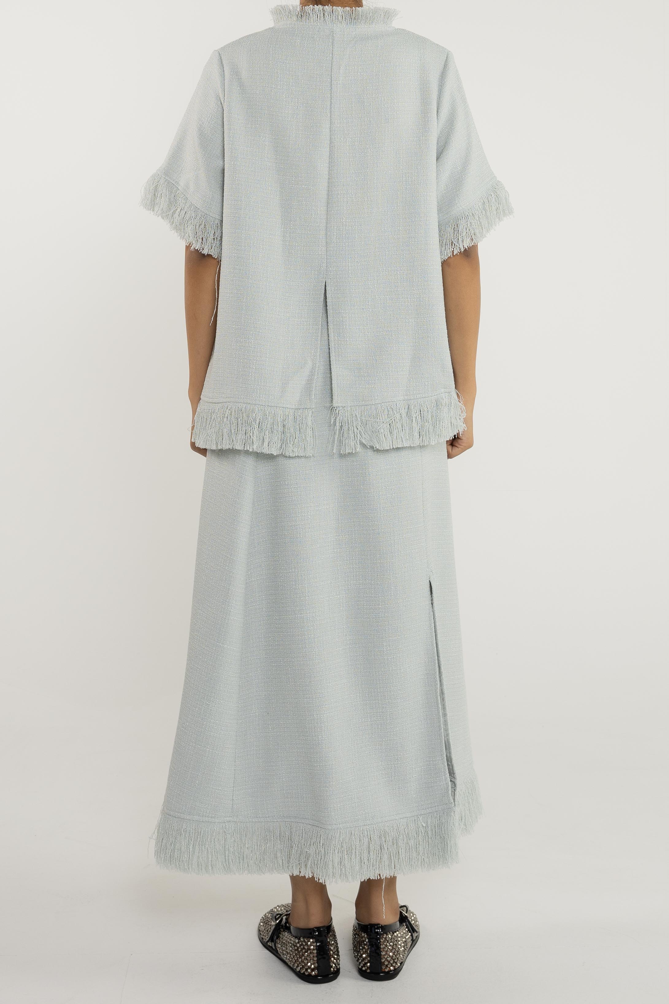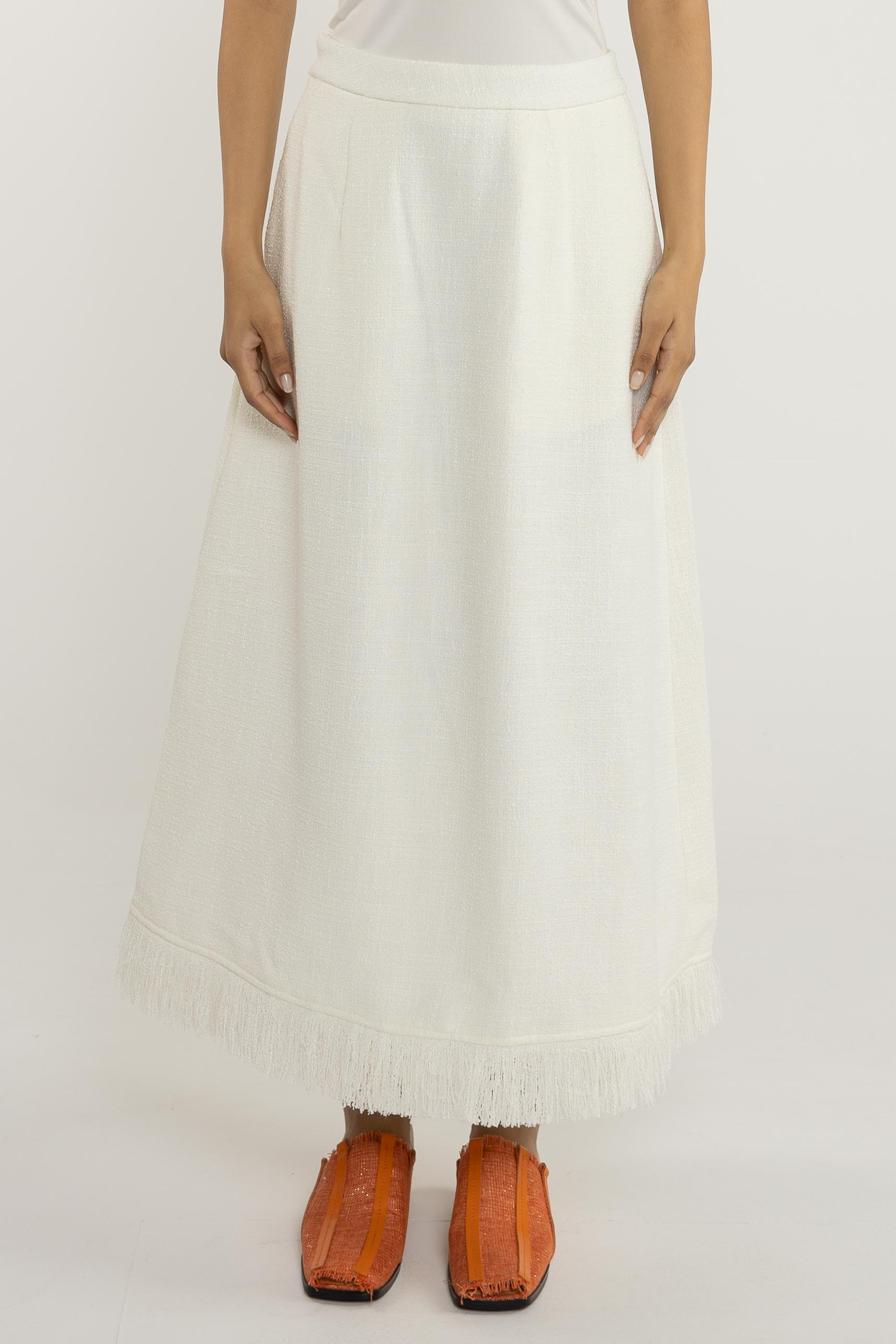 Maxi Skirt. Side zip enclosure. Frailed hemline
