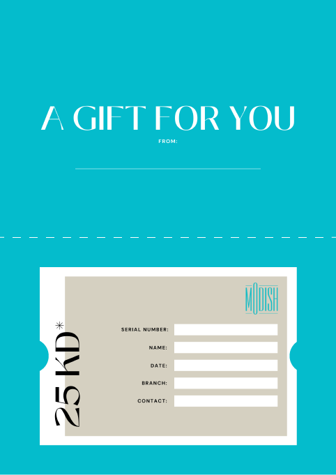 Modish Gift Cards are a great way to gift your loved ones and let them pick what they desire from our great collections. Our Gift Cards can be redeemed in any of our branches in Kuwait.